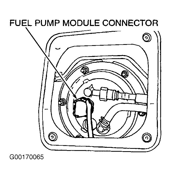 Remove rear seat cushion and remove access plate to gain access to fuel pump module harness connector. See Fig 1. Disconnect fuel pump module harness connector. Start engine. Allow engine to operate until it stalls. Turn ignition off. Reconnect fuel pump harness connector after repairs are completed. Reinstall access plate and rear seat cushion.