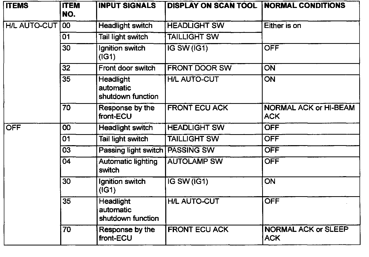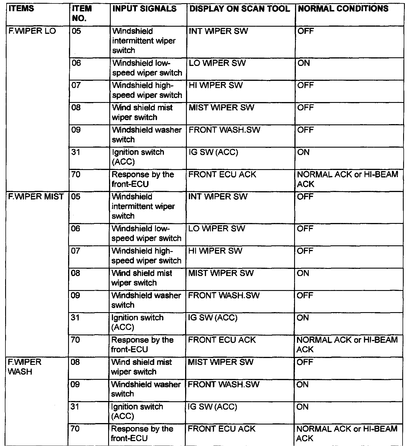 2. The following input signals can be checked by using the scan tool and the SWS monitor kit.