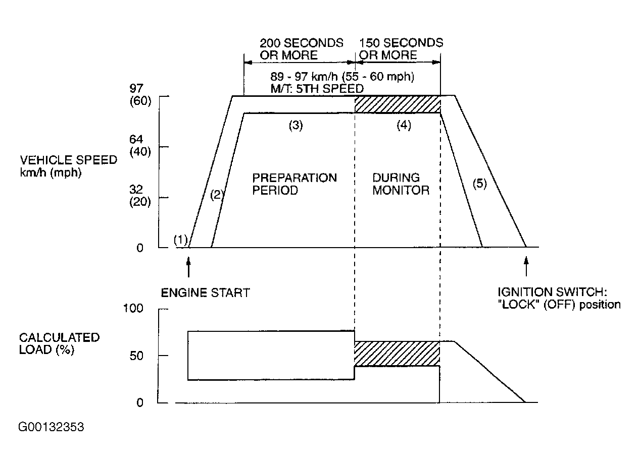 4. Travel for 200 seconds or more while keeping speed at 55-60 MPH. Use 5th gear on M/T.