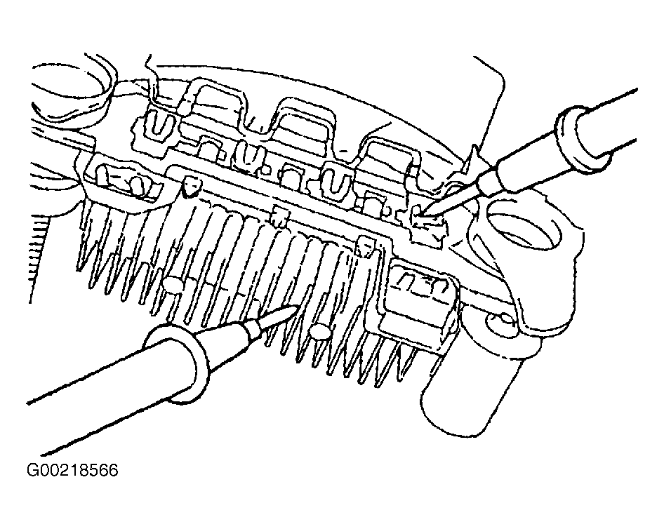 . If there is continuity between directions or if there is no continuity, diode is damaged, so replace rectifier.