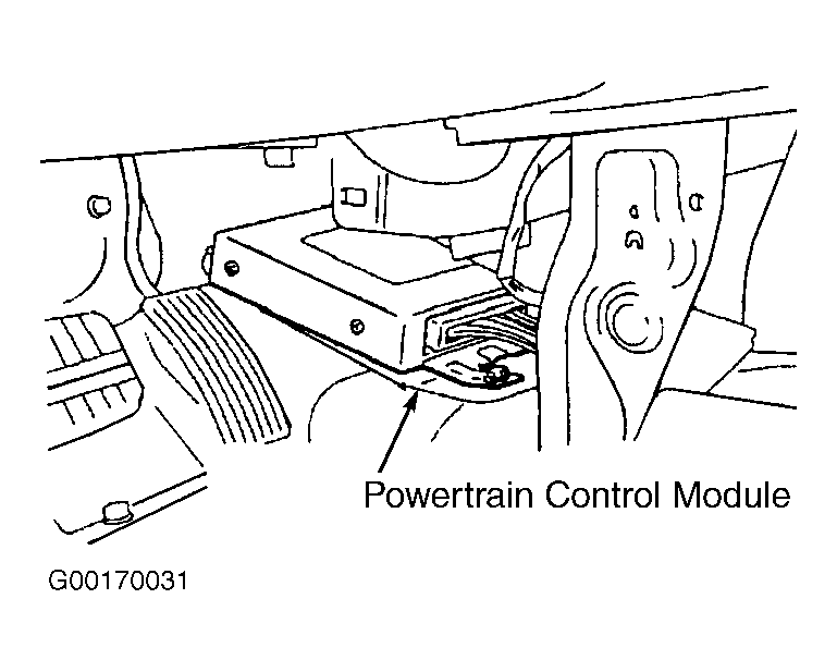 Powertrain Control Module (PCM) is located under center of instrument panel. See Figure. To remove and install PCM, see Fig 1.