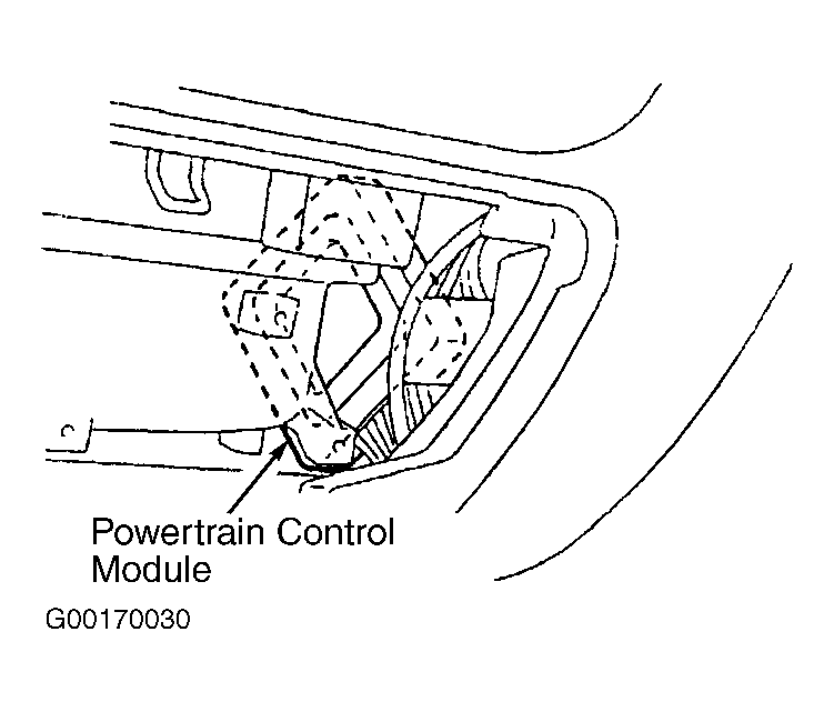 Powertrain Control Module (PCM) is located behind right end of instrument panel. See Figure. To remove and install PCM, see Fig 1.