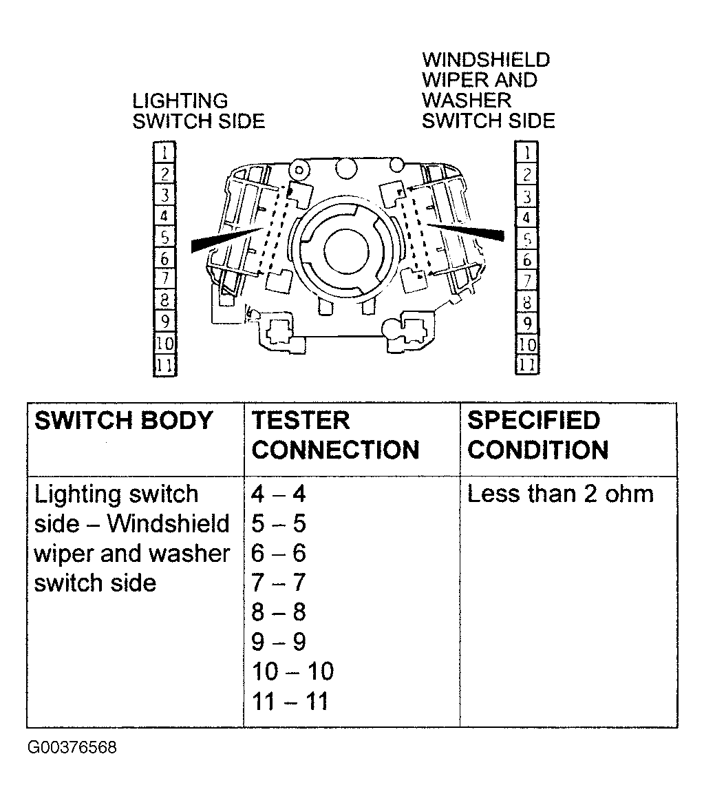Replace the column switch. If the equipment, which are described in CIRCUIT OPERATION , work normally, the input signal from the column switch (windshield wiper and washer switch) should be normal.