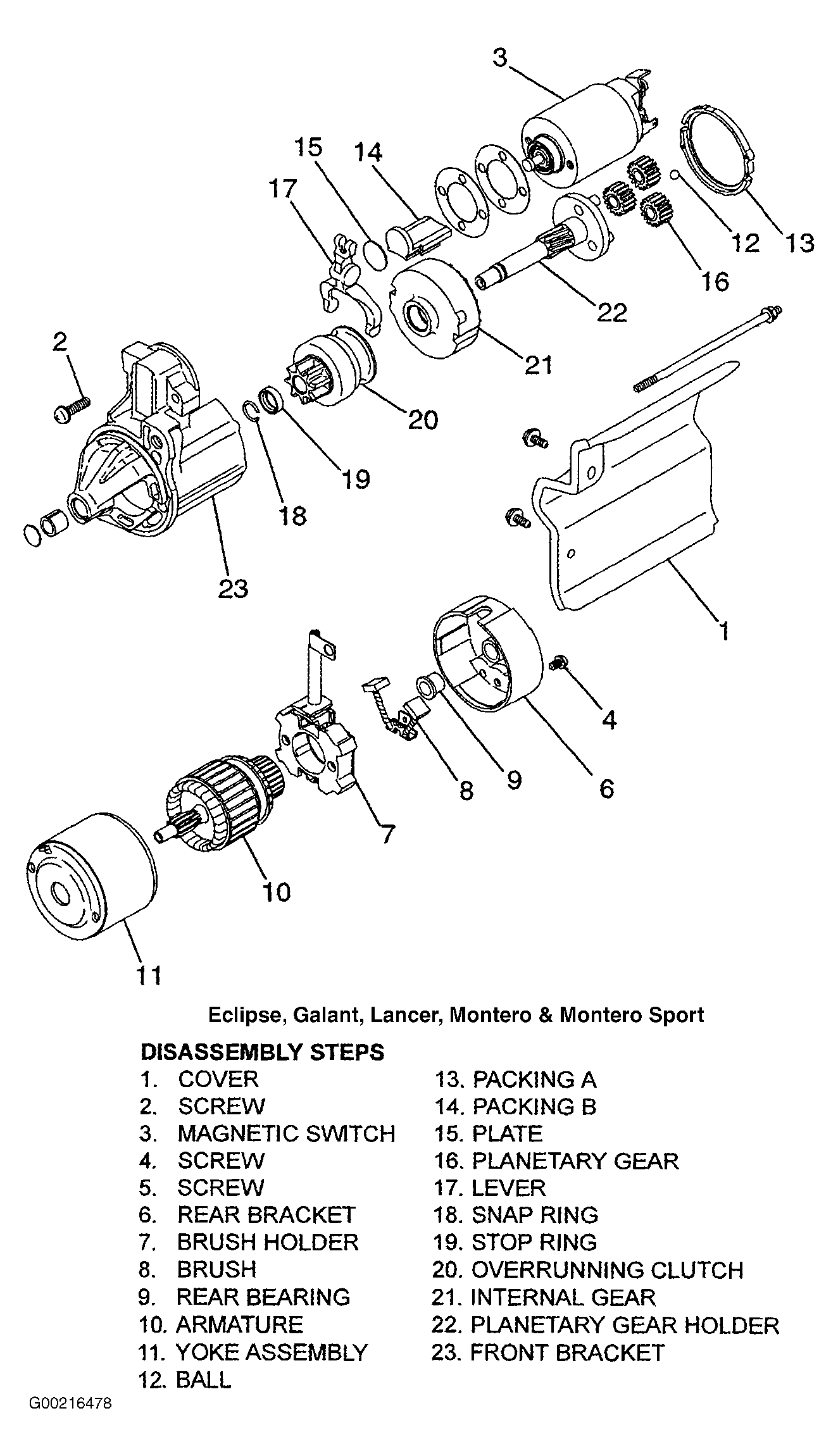 Fig 1: Exploded View Of Starter Motor (2.4L Engine)