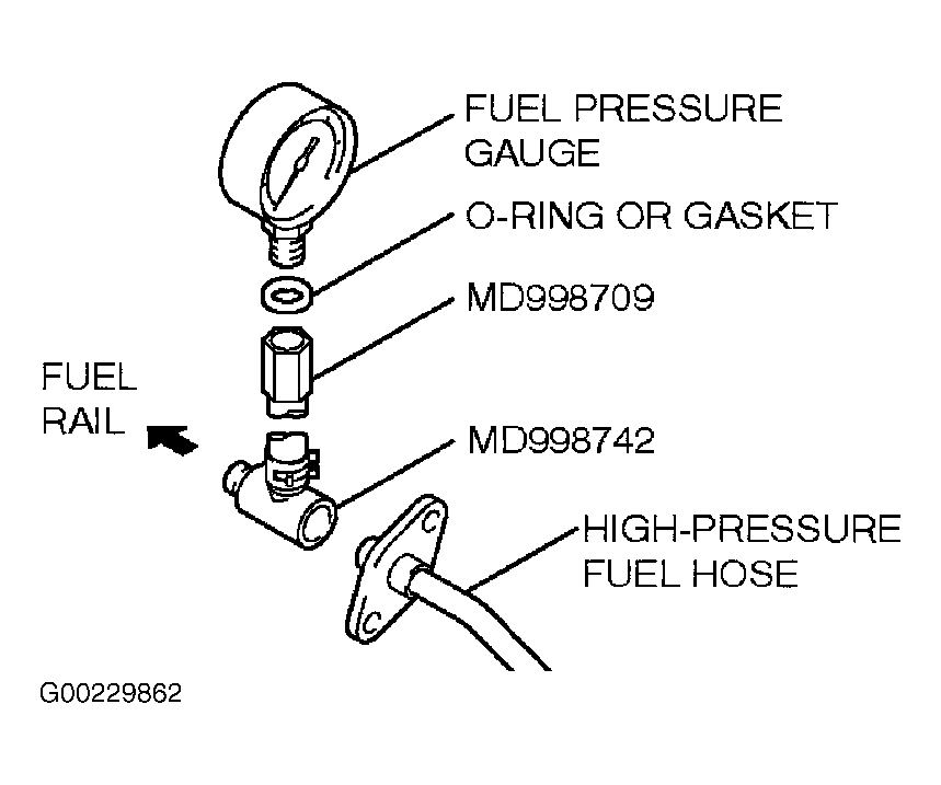 Home >> Mitsubishi >> 2003 >> Eclipse GTS, Standard >> Repair and Diagnosis >> Engine Performance >> System >> Engine Controls - Basic Diagnostic Procedures >> Fuel System >> Fuel Pressure >> Using Fuel Pressure Gauge