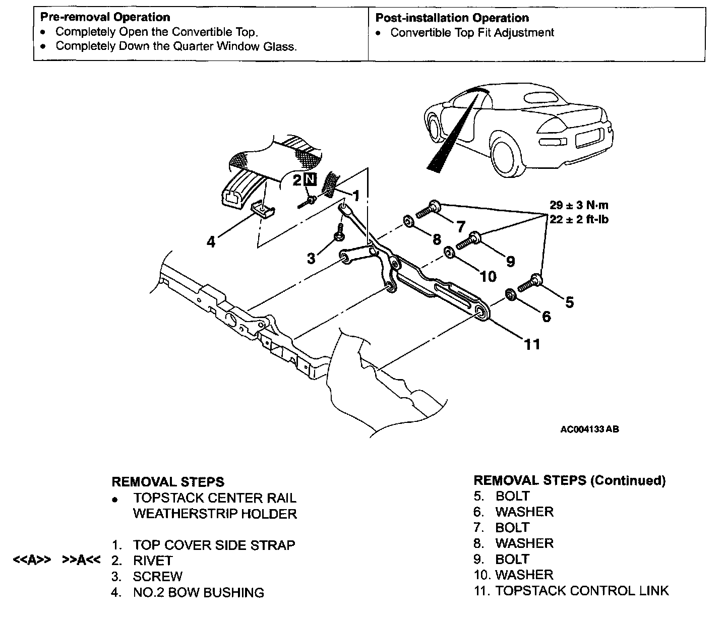 Home >> Mitsubishi >> 2003 >> Eclipse L4-2.4L SOHC >> Repair and Diagnosis >> Body and Frame >> Roof and Associated Components >> Convertible Top >> Service and Repair >> Topstack Control Link Assembly