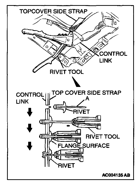 1. Insert the rivet [psi 4.8 mm (psi 0.19 inch)] into the top cover side strap and control link.