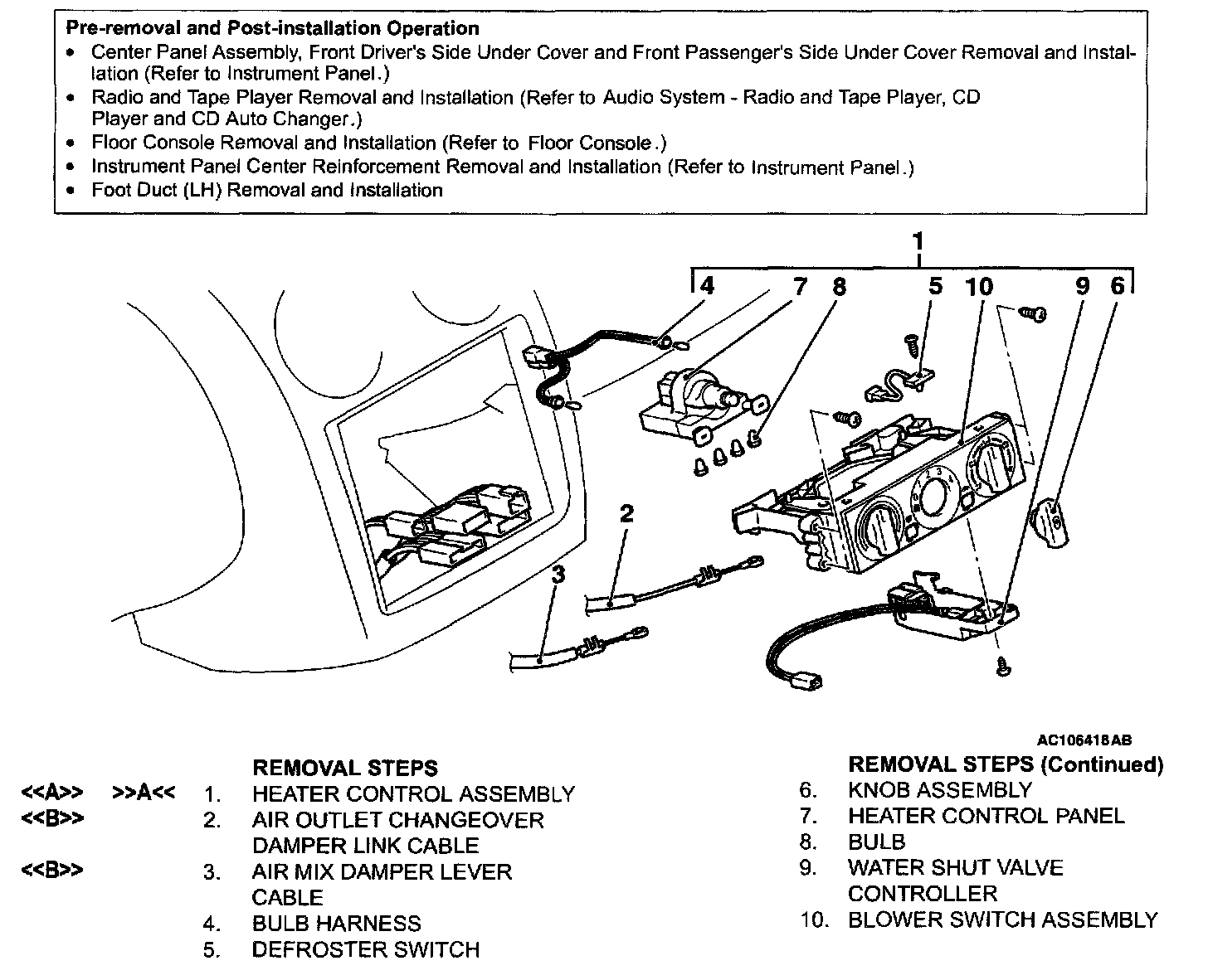 <> HEATER CONTROL ASSEMBLY REMOVAL