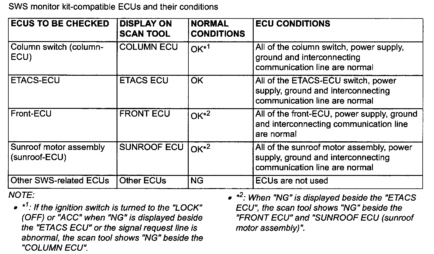 2. The following ECUs can be checked by using the scan tool and the SWS monitor kit.