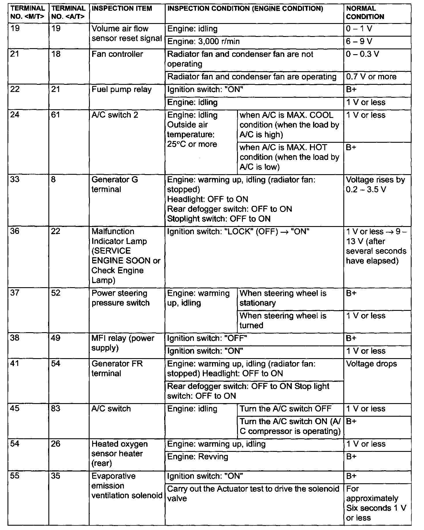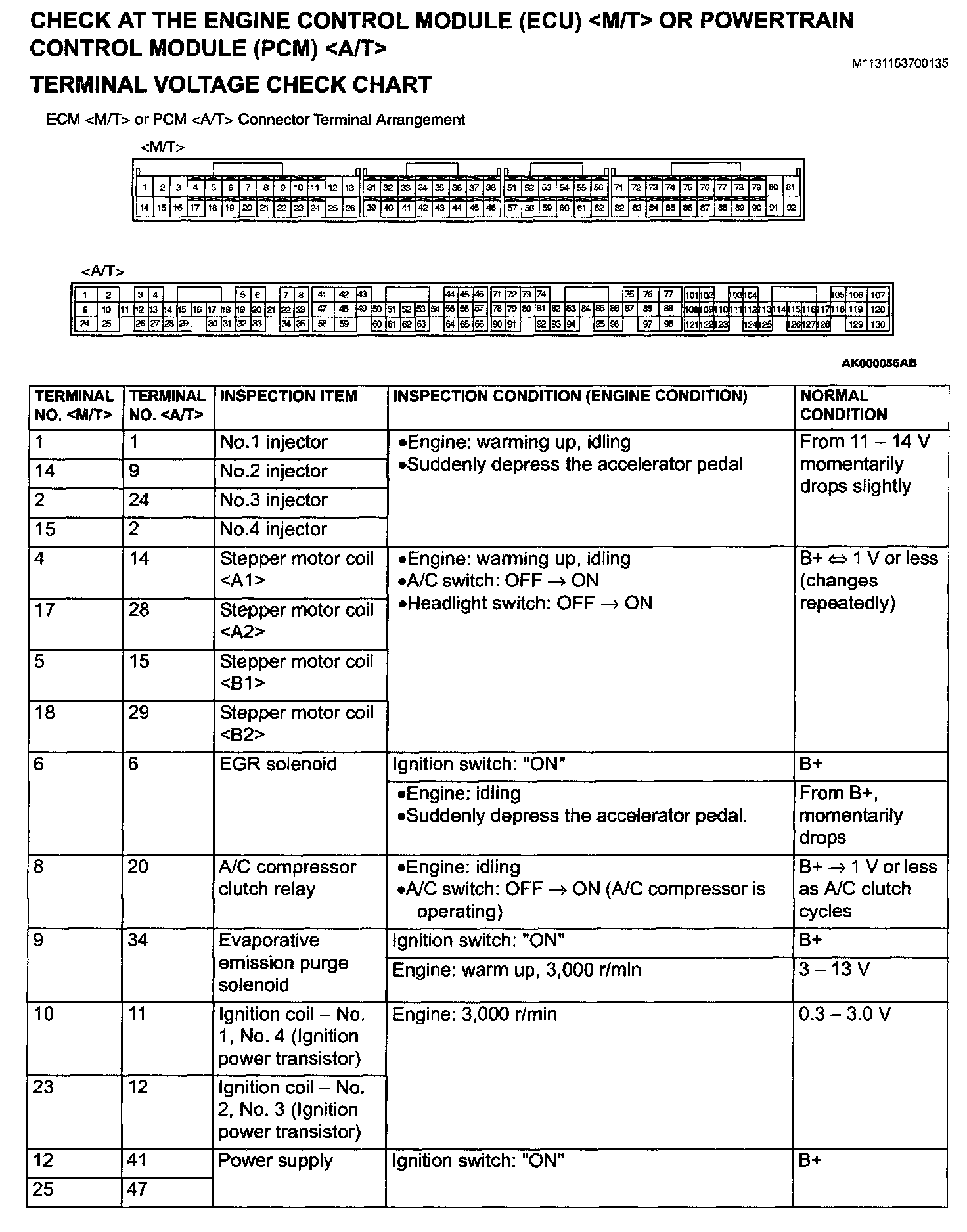 ECM <M/T> Or PCM <A/T> Connector Terminal Arrangement Part 4: