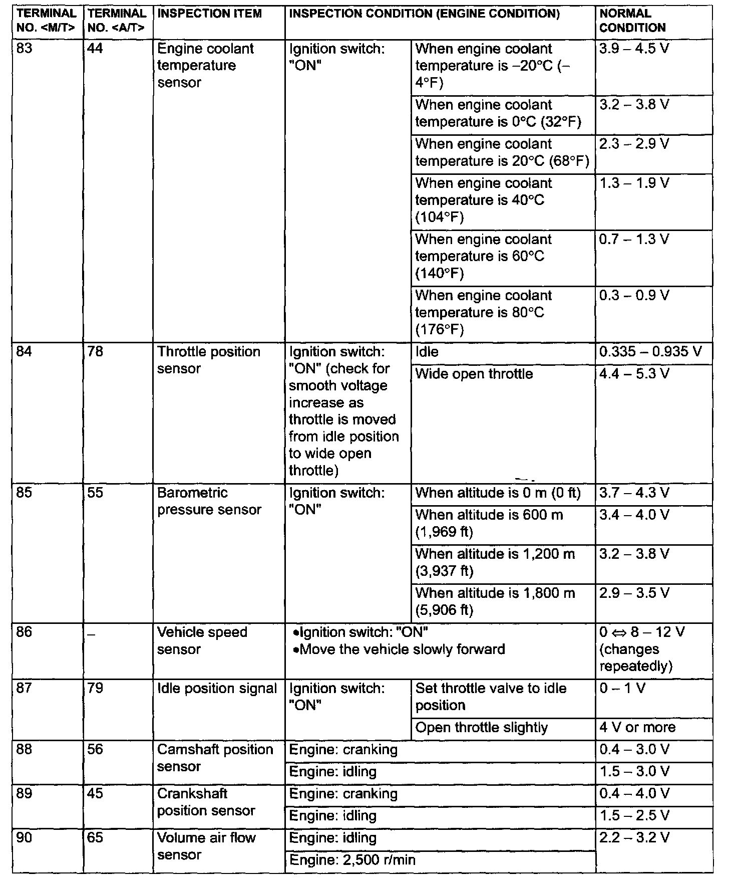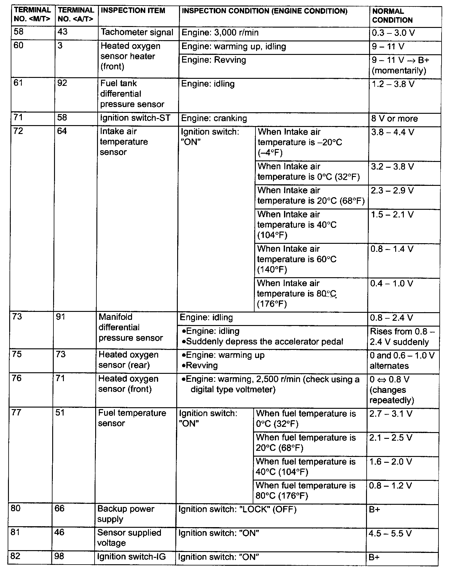 TERMINAL VOLTAGE CHECK CHART