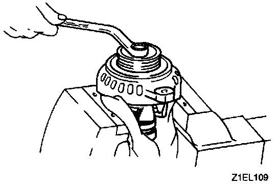 Set the pulley upward, clamp the rotor in a vise, and remove the pulley.