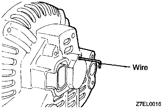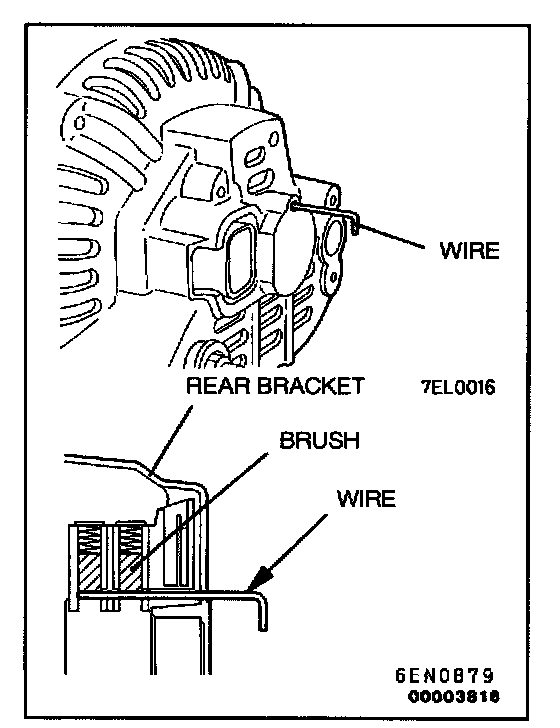 After installing the regulator assembly, insert a wire through the hole provided on the rear bracket while pressing down on the brush, and secure the brush.