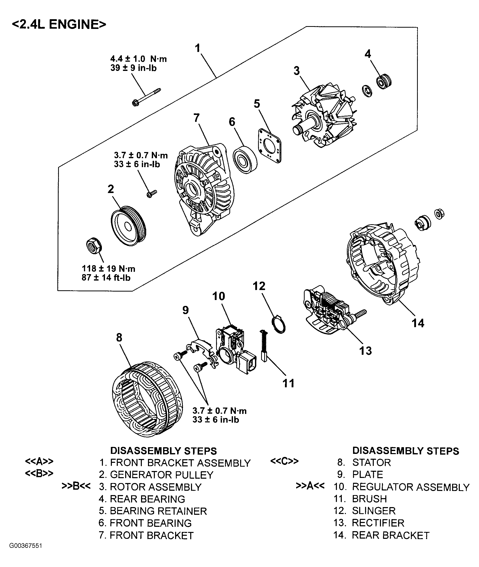 Fig 1: Generator Disassembly & Assembly (2.4L)