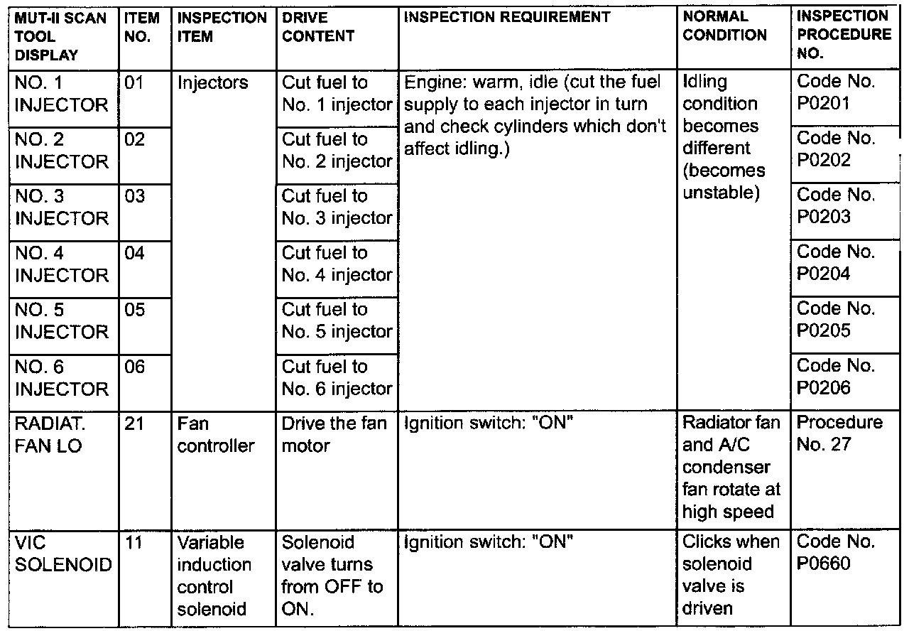 Actuator Test Reference Table Part 2: