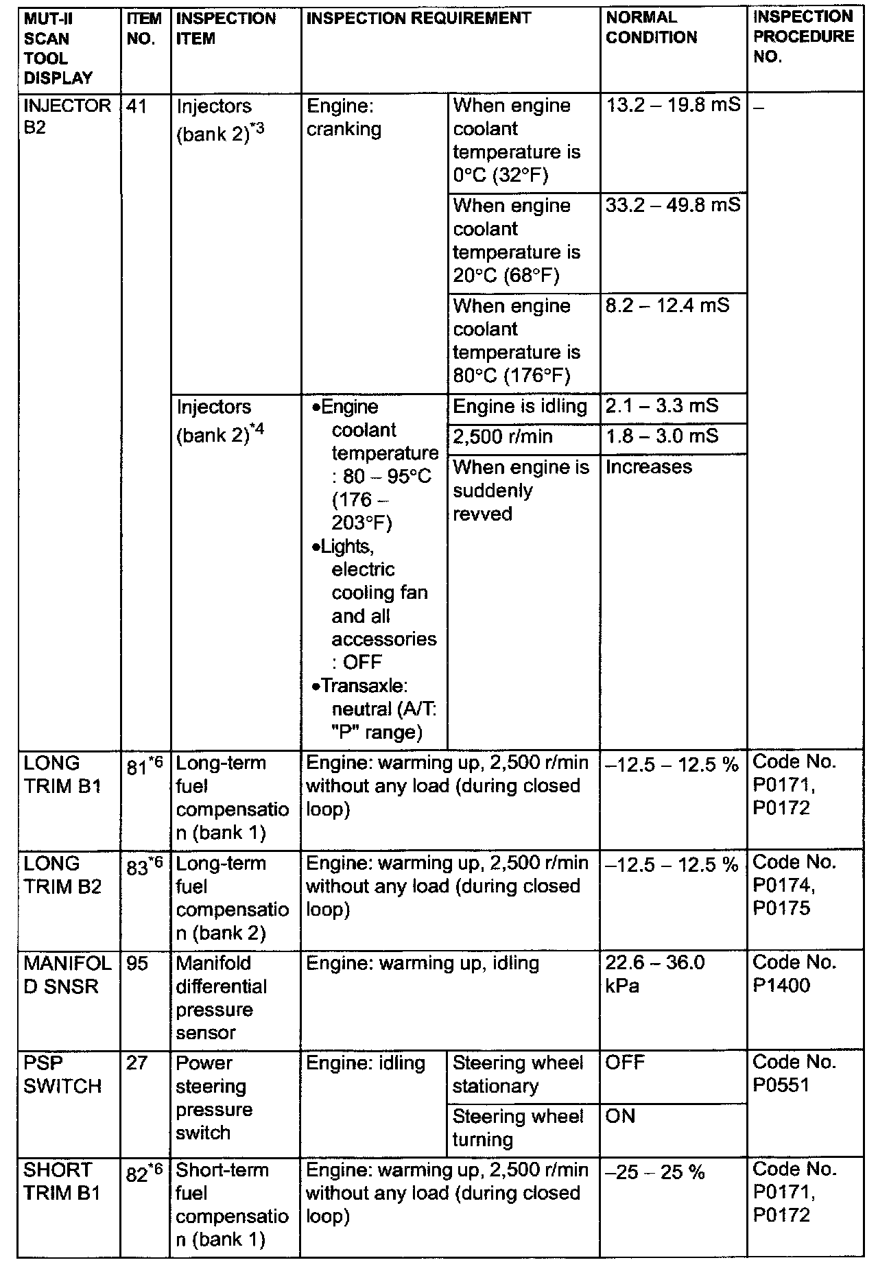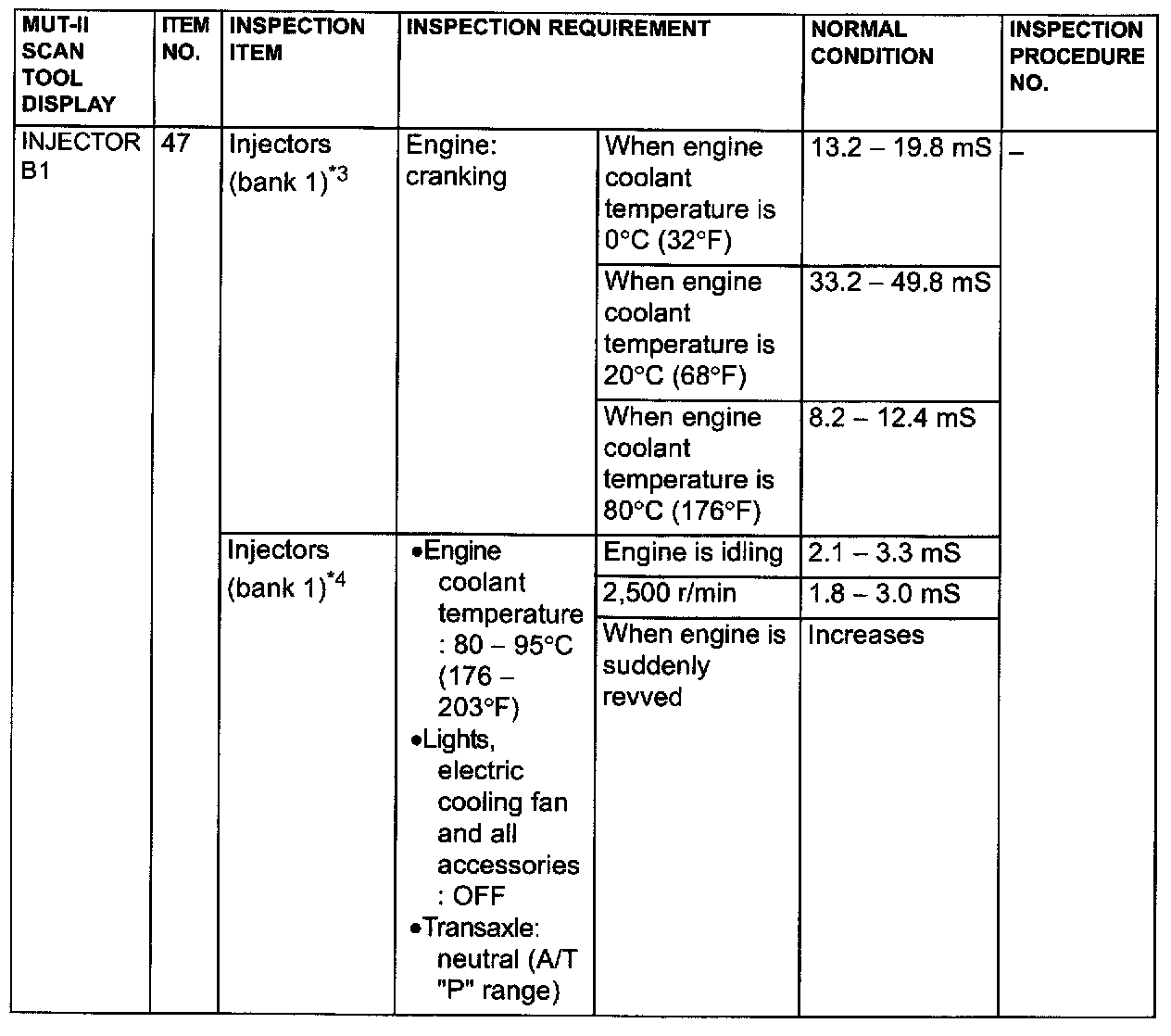 NOTE: *4: In a new vehicle [driven approximately 500 km (311 mile) or less], the injector drive time is sometimes 10% longer than the standard time.