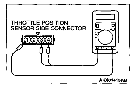 3. Measure the resistance between throttle position sensor side connector terminals 1 and terminal 3.