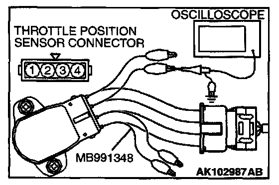 2. Connect the oscilloscope probe to the throttle position sensor side connector terminal 3.