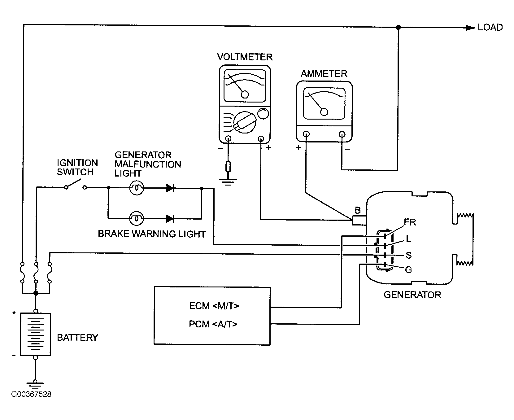 If the voltage is 0 V, the cause is probably an open circuit in the wire or fusible link between the generator B terminal and the battery positive terminal.