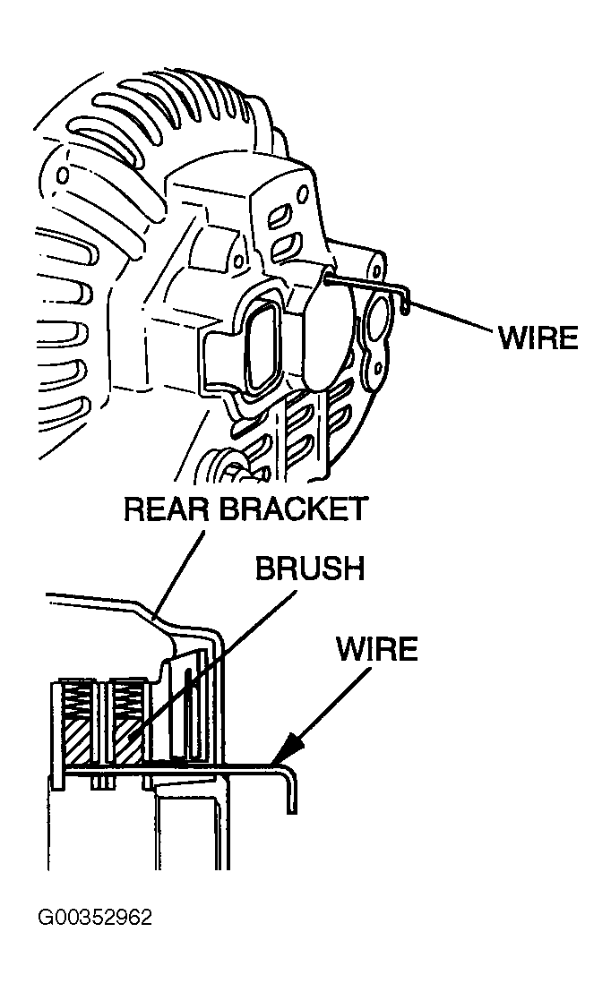 - A) Regulator Assembly Installation - After installing the regulator assembly, insert a wire through the hold provided on the rear bracket while pressing down on the brush, and secure the brush. See Fig 1 .