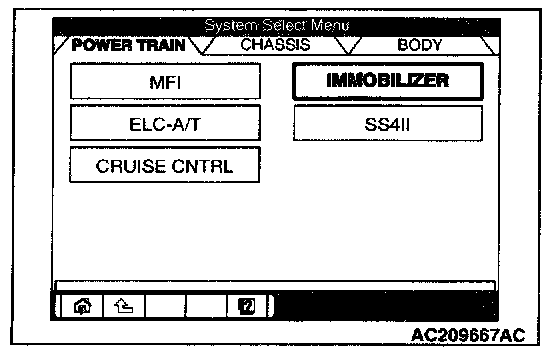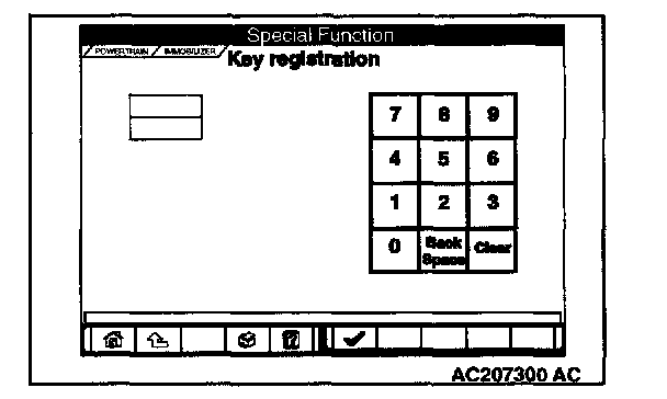 Home >> Mitsubishi >> 2003 >> Lancer Evolution L4-2.0L DOHC Turbo >> Repair and Diagnosis >> Accessories and Optional Equipment >> Antitheft and Alarm Systems >> Testing and Inspection >> Programming and Relearning >> Encrypted Key Code Registration Method >> Registration With Scan Tool MB991958