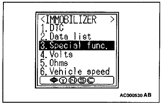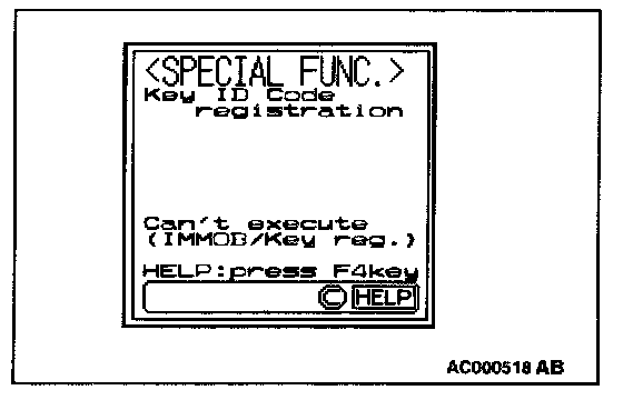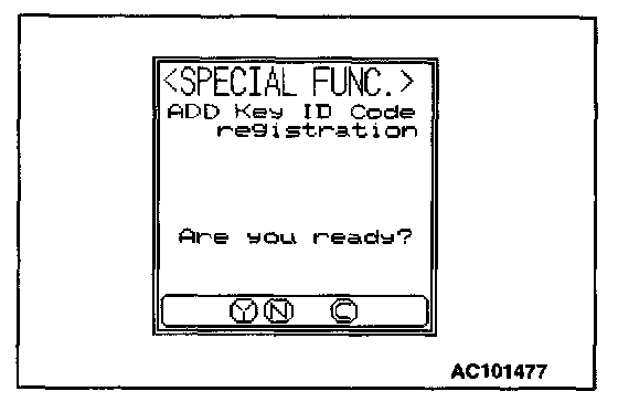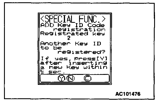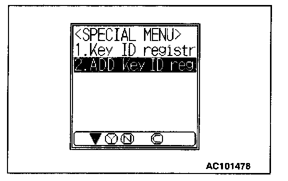 REGISTRATION OF ADDITIONAL KEYS WITH THE SCAN TOOL MB991502An additional key is registered with the scan tool while keeping all existing key data.