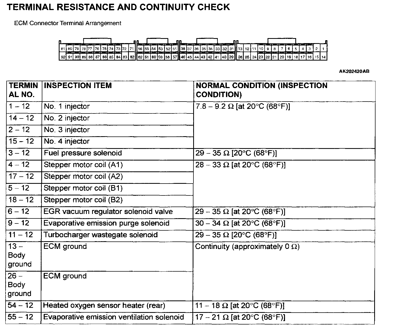 ECM Connector Terminal Arrangement Part 1: