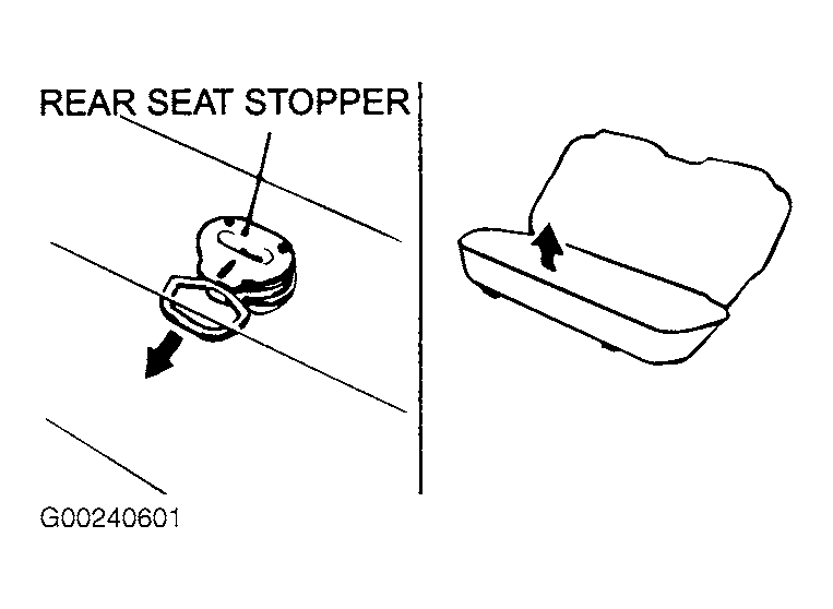 - While pulling rear seat stopper, lift up and remove rear seat cushion. See Fig 1. Remove fuel pump module access hole cover. See Fig 2. Working through access hole, cover fuel hose with a shop towel and disconnect fuel hoses at fuel pump module.