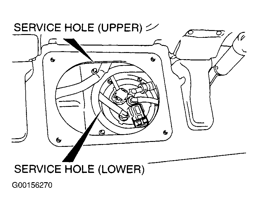 - Fold second seat to gain access to fuel pump module access hole cover. See Figure. Remove access hole cover (upper side) and packing. Remove access hole cover (lower side) and packing. Disconnect fuel pump module harness connector. Disconnect fuel high-pressure fuel hose and fuel tank hose. Unscrew mounting nut to remove fuel pump module. See Figure.