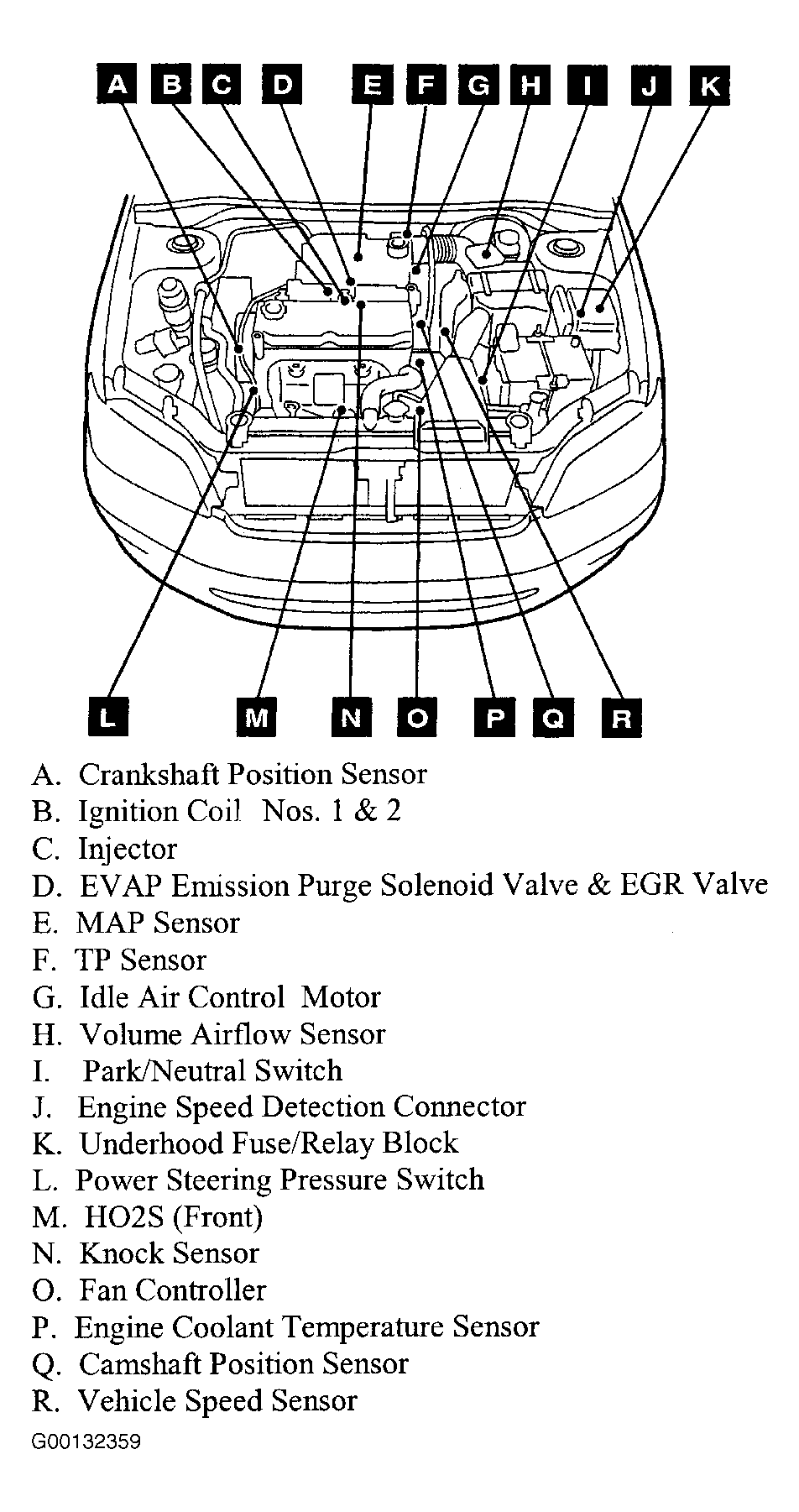 A 5-volt reference voltage is applied on the TP sensor power terminal (terminal No. 1) from the ECM (terminal No. 81 - M/T) or PCM (terminal No. 46 - A/T). The ground terminal (terminal No. 2) is grounded with ECM (terminal No. 92 - M/T) or PCM (terminal No. 57 - A/T). When the throttle valve shaft is turned from idle position to fully opened position, the resistor between the TP sensor output terminal (terminal No. 2) and ground terminal will increase according to the rotation.