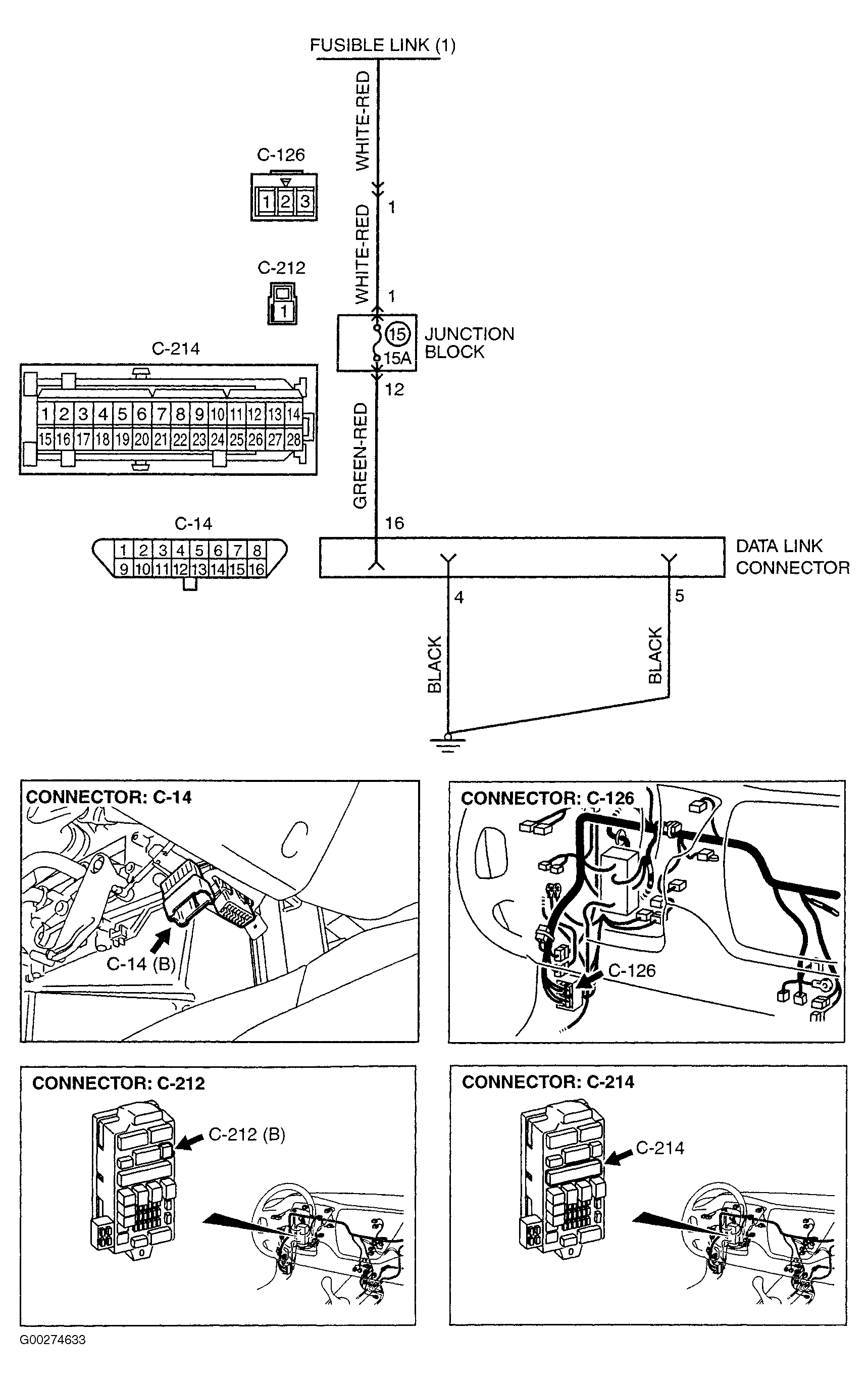 For data link connector location, related circuit and connector terminal identification, see Fig 1 .
