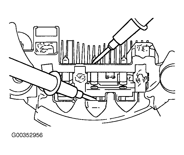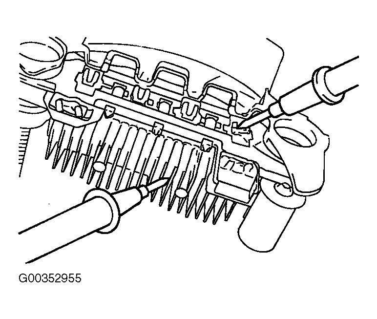 - Check the condition of the positive heat sink by checking continuity between the positive heat sink and each of the stator coil lead connecting terminals. If continuity is present for both terminals, the diode is shorted. Replace the rectifier assembly. See Fig 1