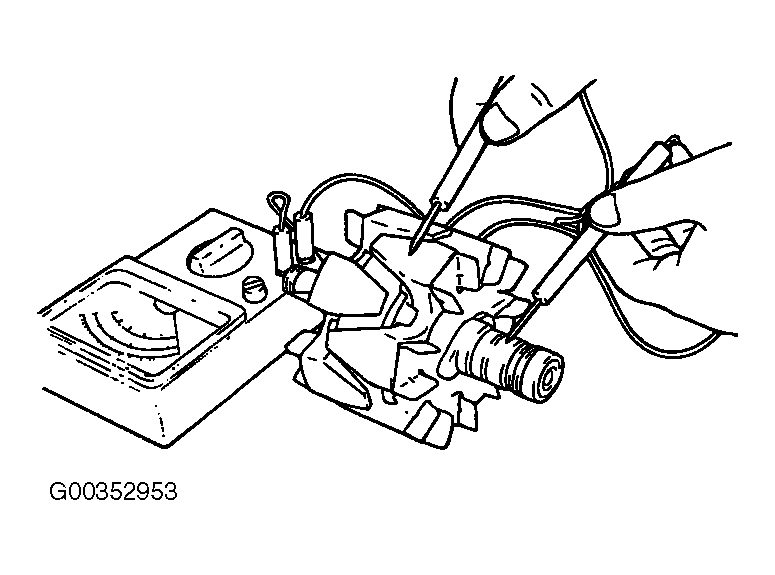 2. Check the continuity between the slip ring and the core. If there is continuity, replace the rotor. See Fig 2 .