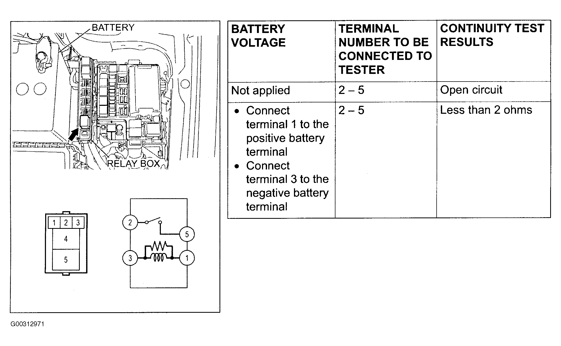 For starter relay testing see