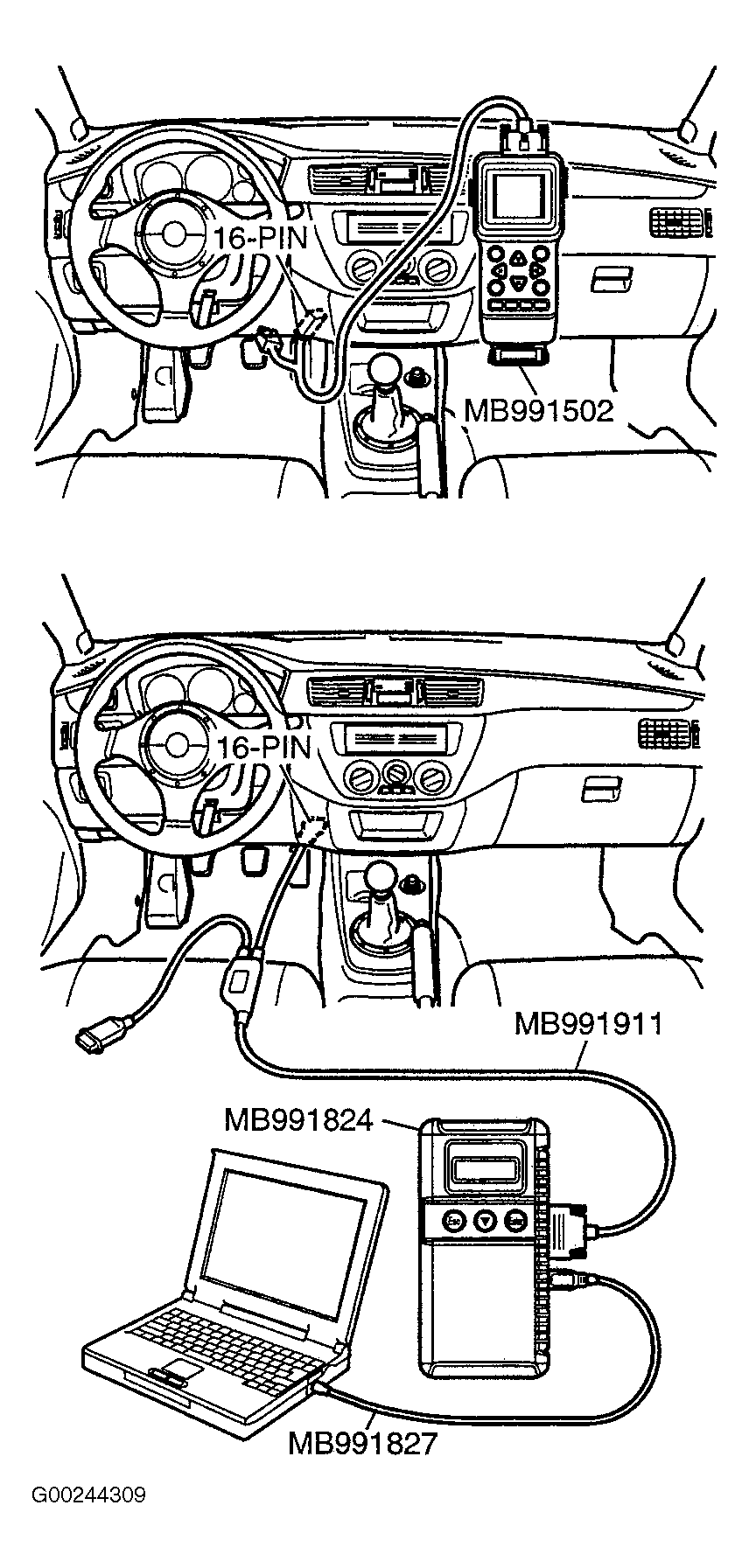 To prevent damage to scan tool, always turn ignition switch to LOCK position before connecting or disconnecting scan tool.