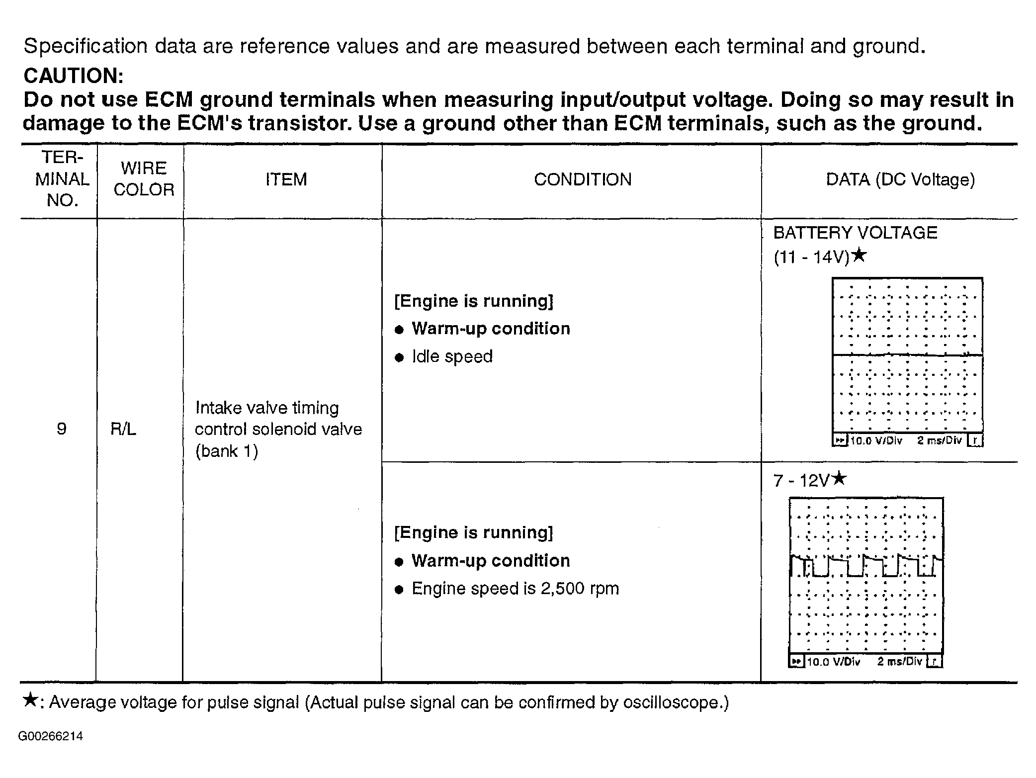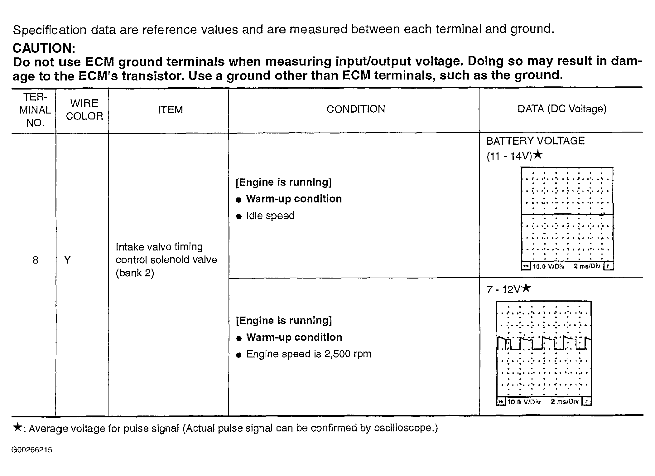 Fig 1: Circuit Testing Value Chart For DTC P0011 Or DTC P0021: IVT Control (Bank 1) (3.5L)