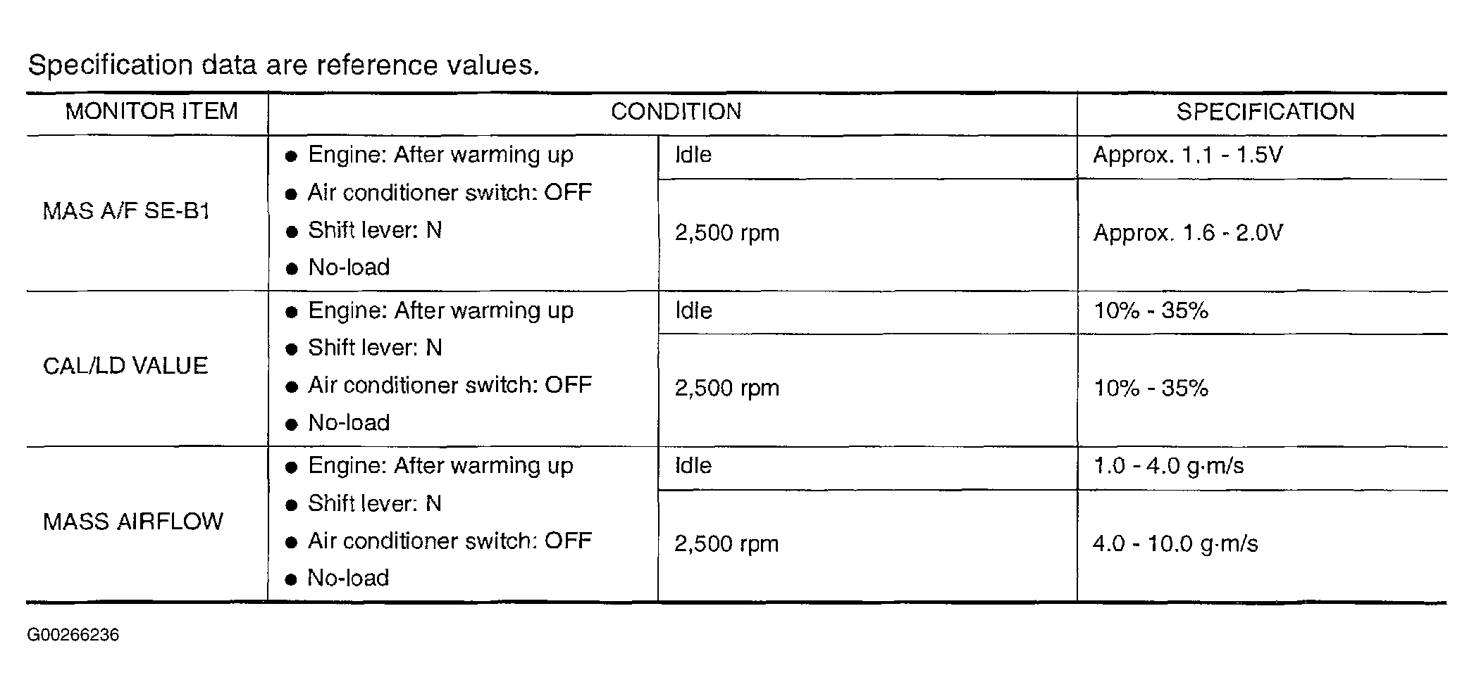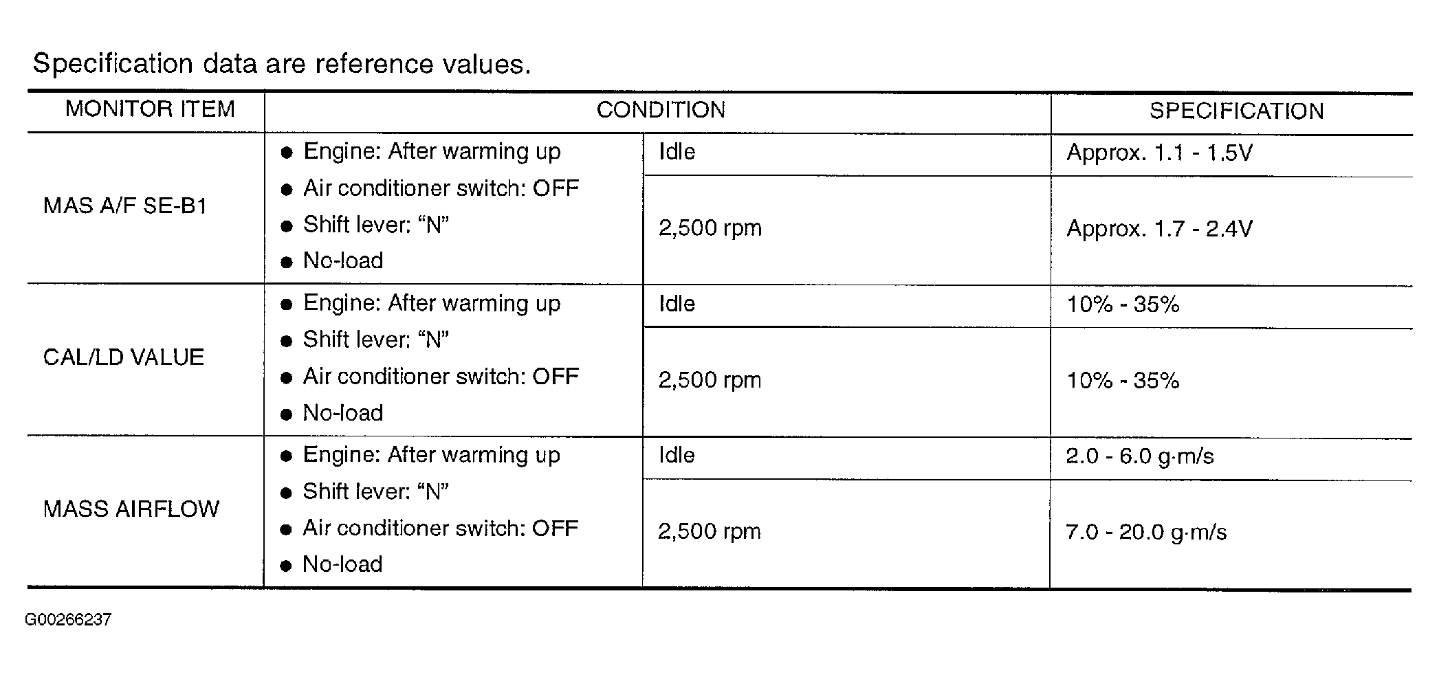 Fig 1: CONSULT-II Reference Value In Data Monitor Mode For DTC P0102 Or DTC P0103: MAF Sensor (2.5L)