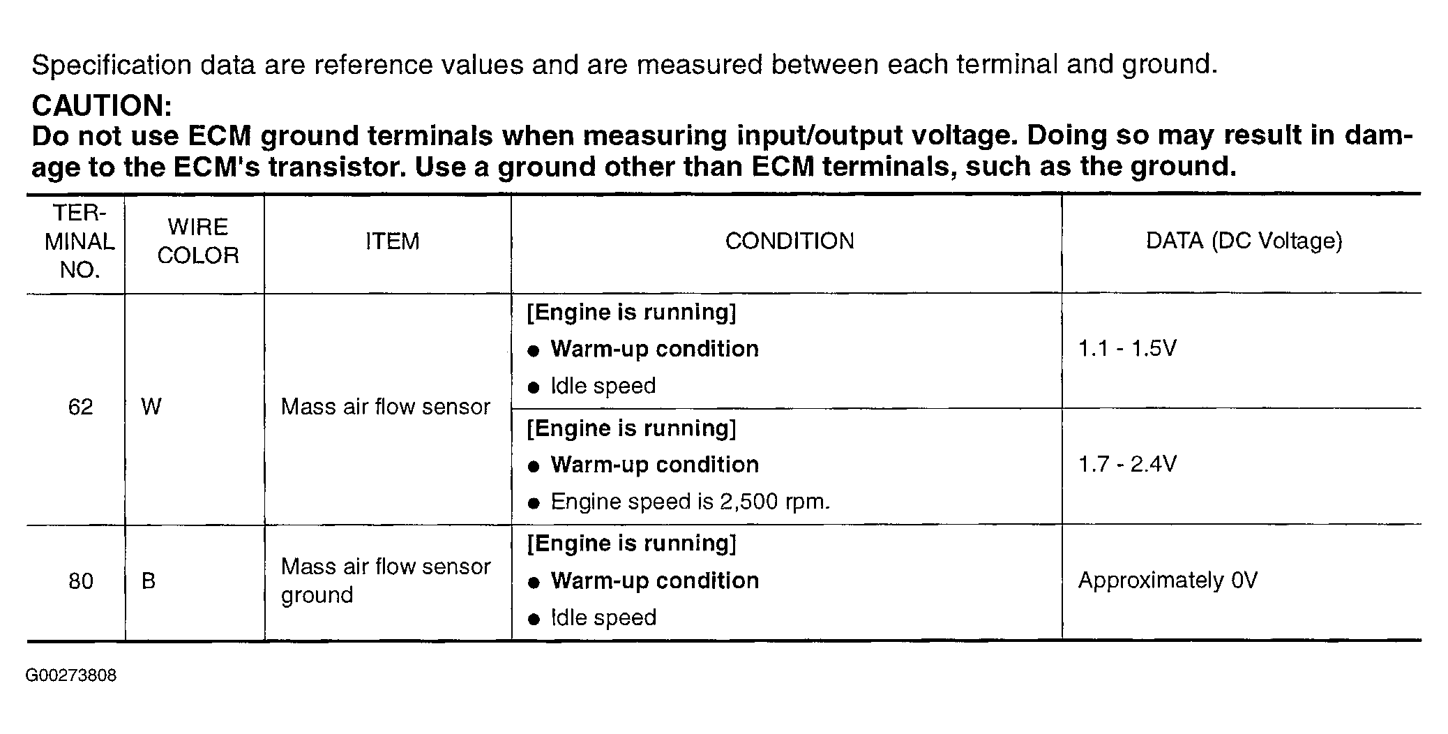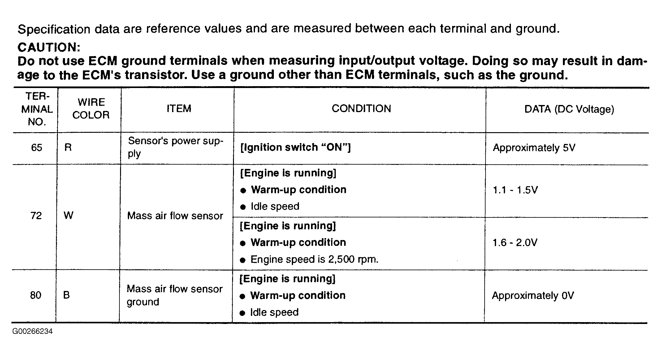 Fig 1: Circuit Testing Value Chart For DTC P0102 Or P0103: MAF Sensor (3.5L)