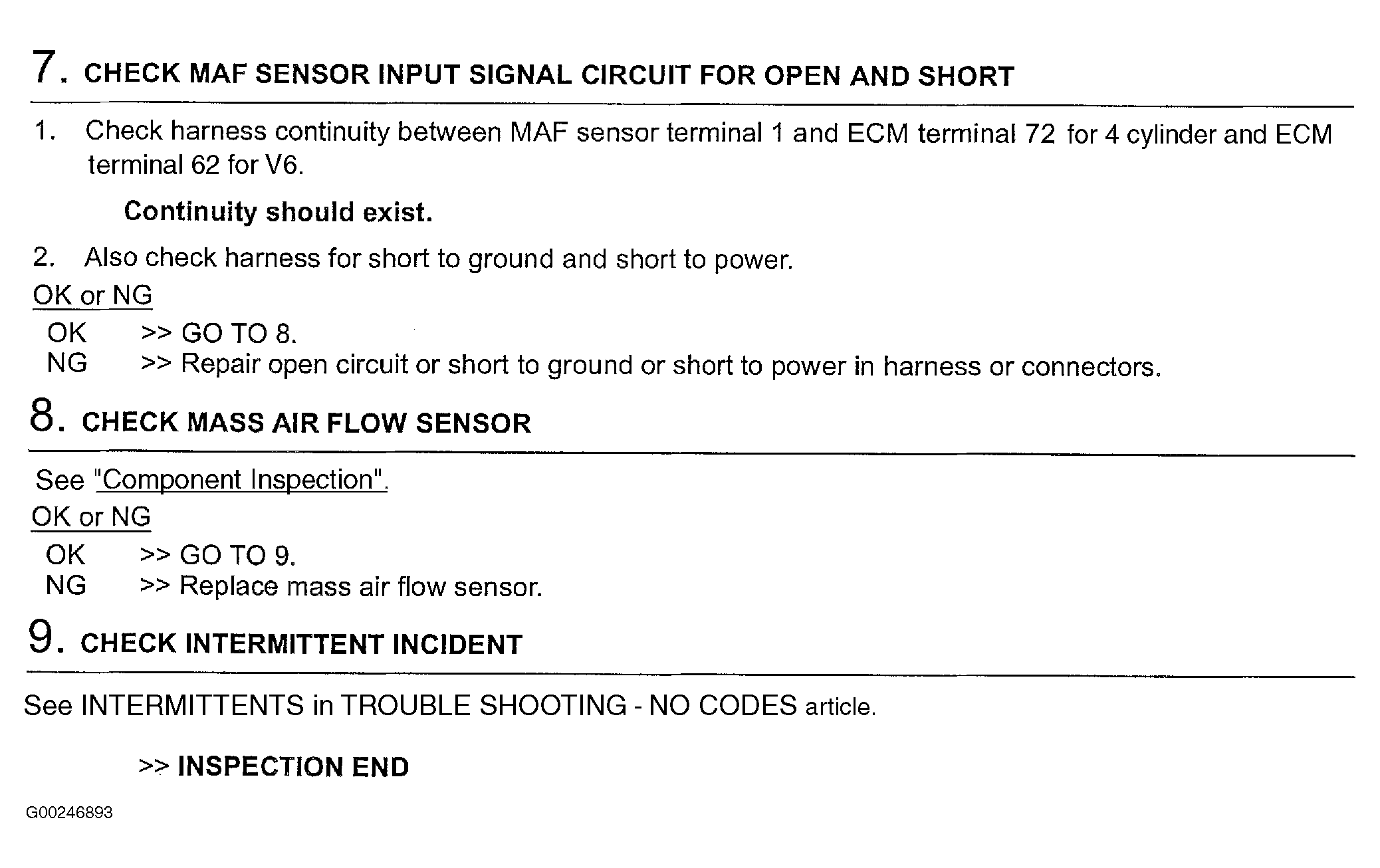 For component inspection, see COMPONENT INSPECTION and for intermittents, see INTERMITTENTS in TROUBLE SHOOTING - NO CODES
