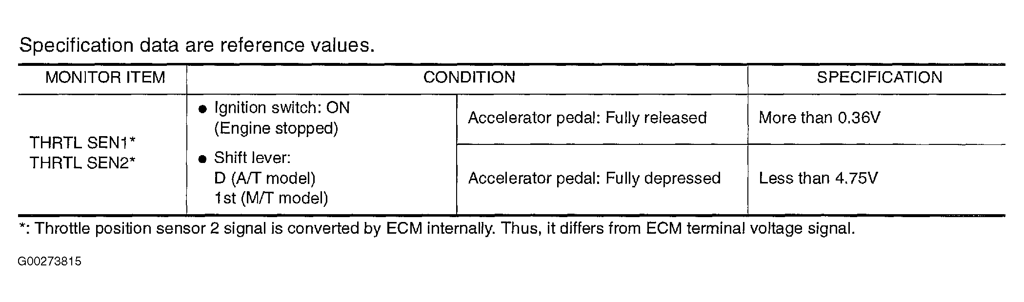 Home >> Mitsubishi >> 2003 >> Lancer Evolution >> Repair and Diagnosis >> External Pages >> Different car >> Section 82 (Engine Controls - Self-Diagnostics) >> Diagnostic Tests >> DTC P0122 Or DTC P0123: Throttle Position Sensor >> CONSULT-II Reference Value In Data Monitor Mode