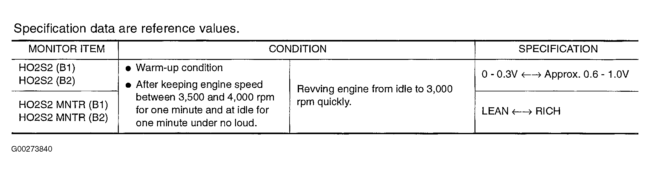 Home >> Mitsubishi >> 2003 >> Lancer Evolution >> Repair and Diagnosis >> External Pages >> Different car >> Section 82 (Engine Controls - Self-Diagnostics) >> Diagnostic Tests >> DTC P0139: Ho2S2 Circuit Slow Response - Bank 1 Or DTC P0159: Ho2S2 Circuit Slow Response - Bank 2 >> CONSULT-II Reference Value In Data Monitor Mode