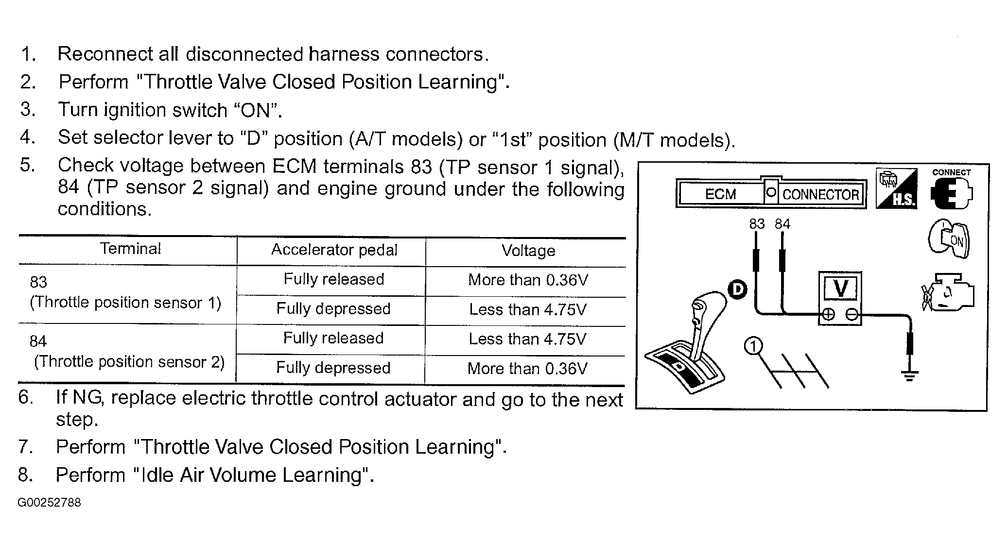 For throttle valve closed position learning, see THROTTLE VALVE CLOSED POSITION LEARNING and for idle air volume learning, see IDLE AIR VOLUME LEARNING .