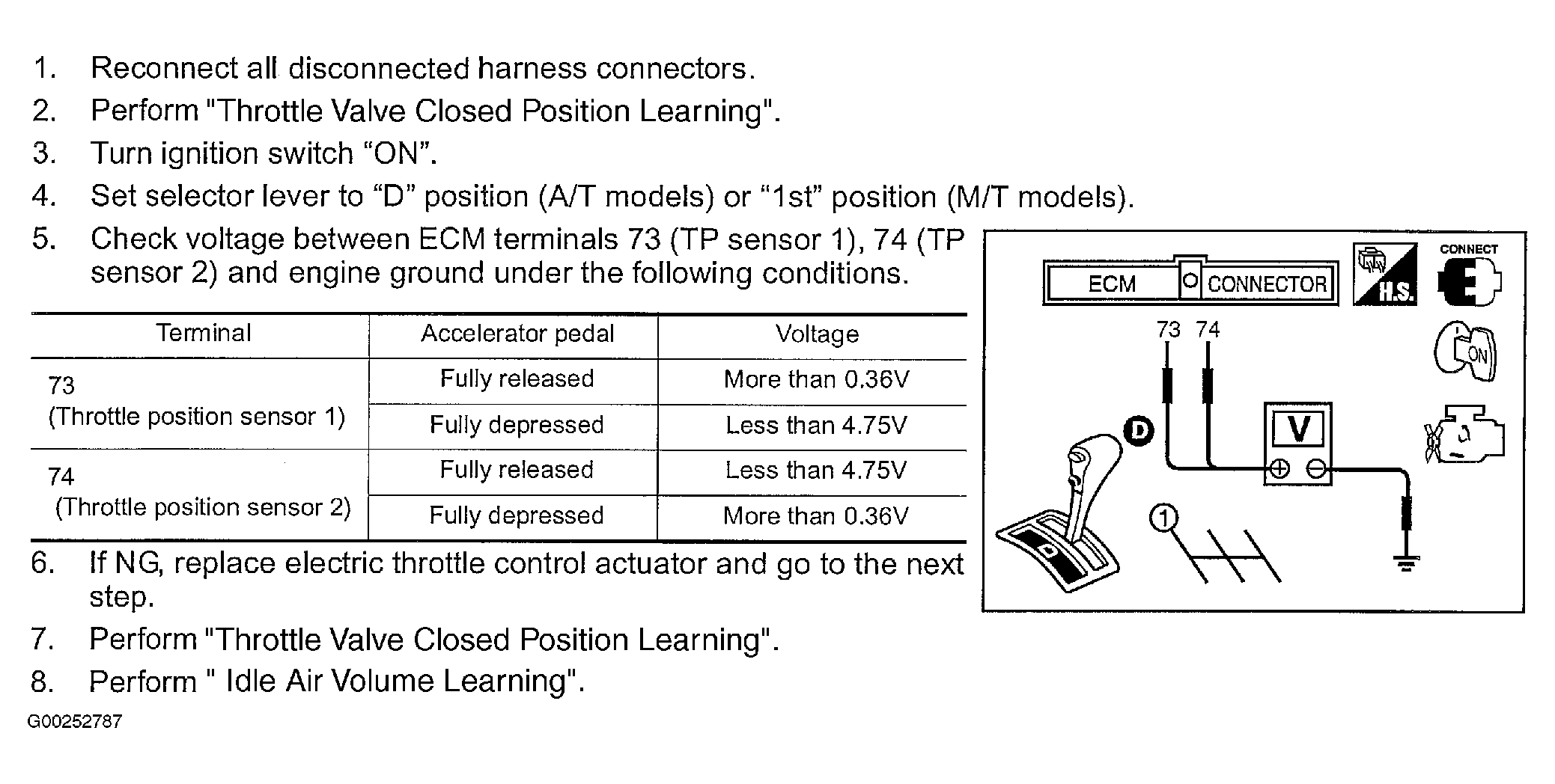 For throttle valve closed position learning, see THROTTLE VALVE CLOSED POSITION LEARNING and for idle air volume learning, see IDLE AIR VOLUME LEARNING .