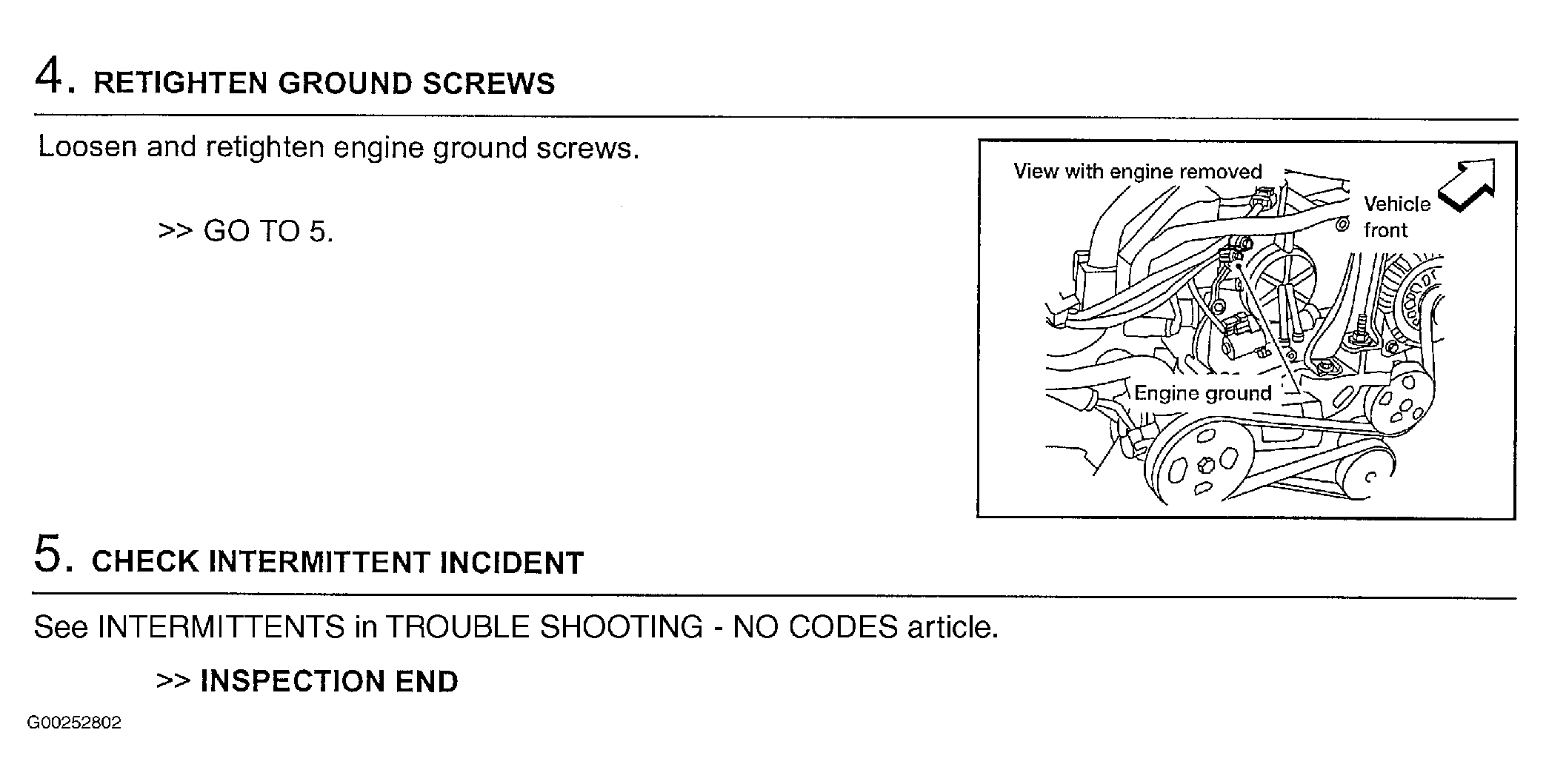 For component inspection, see COMPONENT INSPECTION and for intermittents, see INTERMITTENTS in TROUBLE SHOOTING - NO CODES
