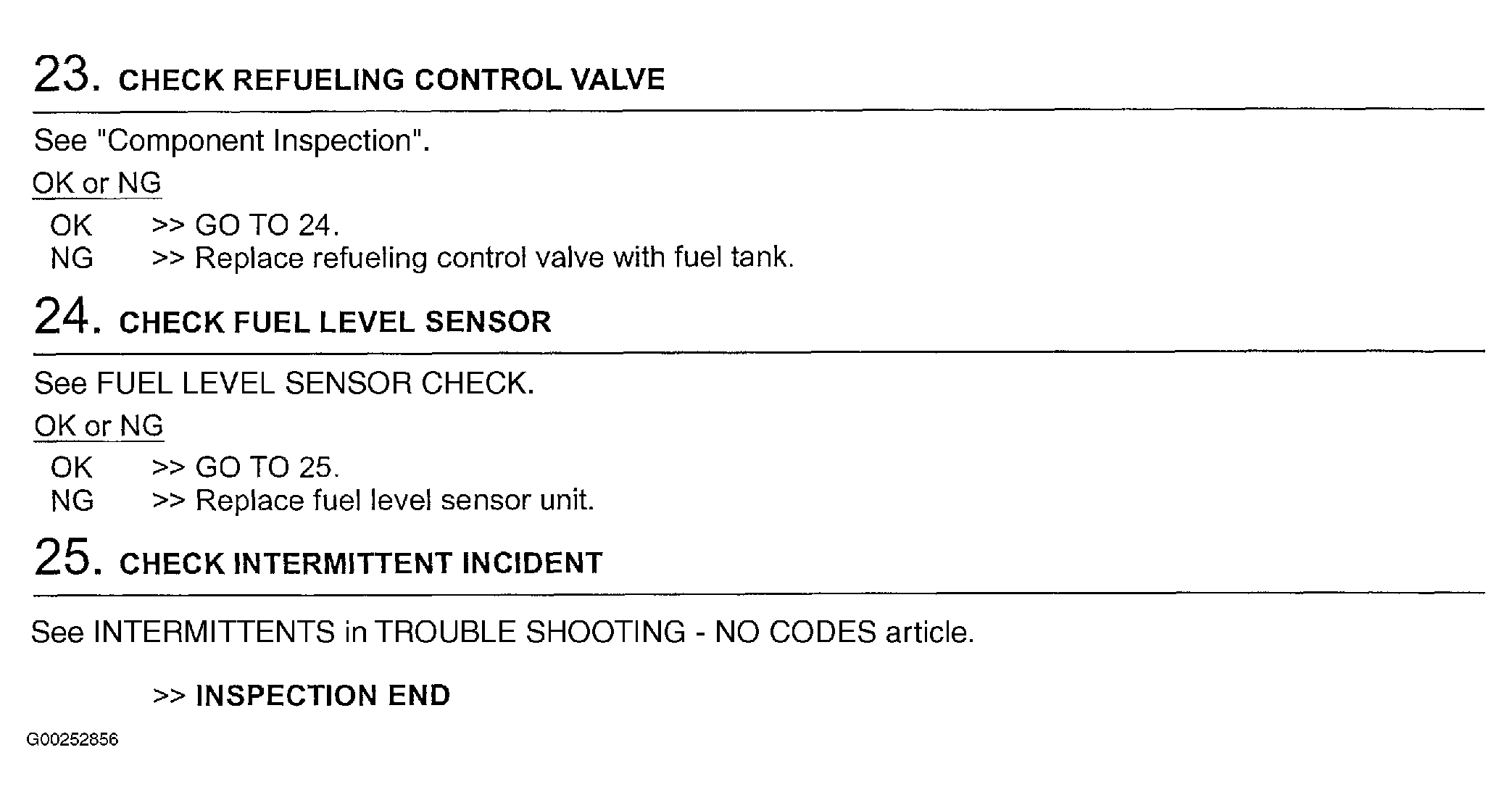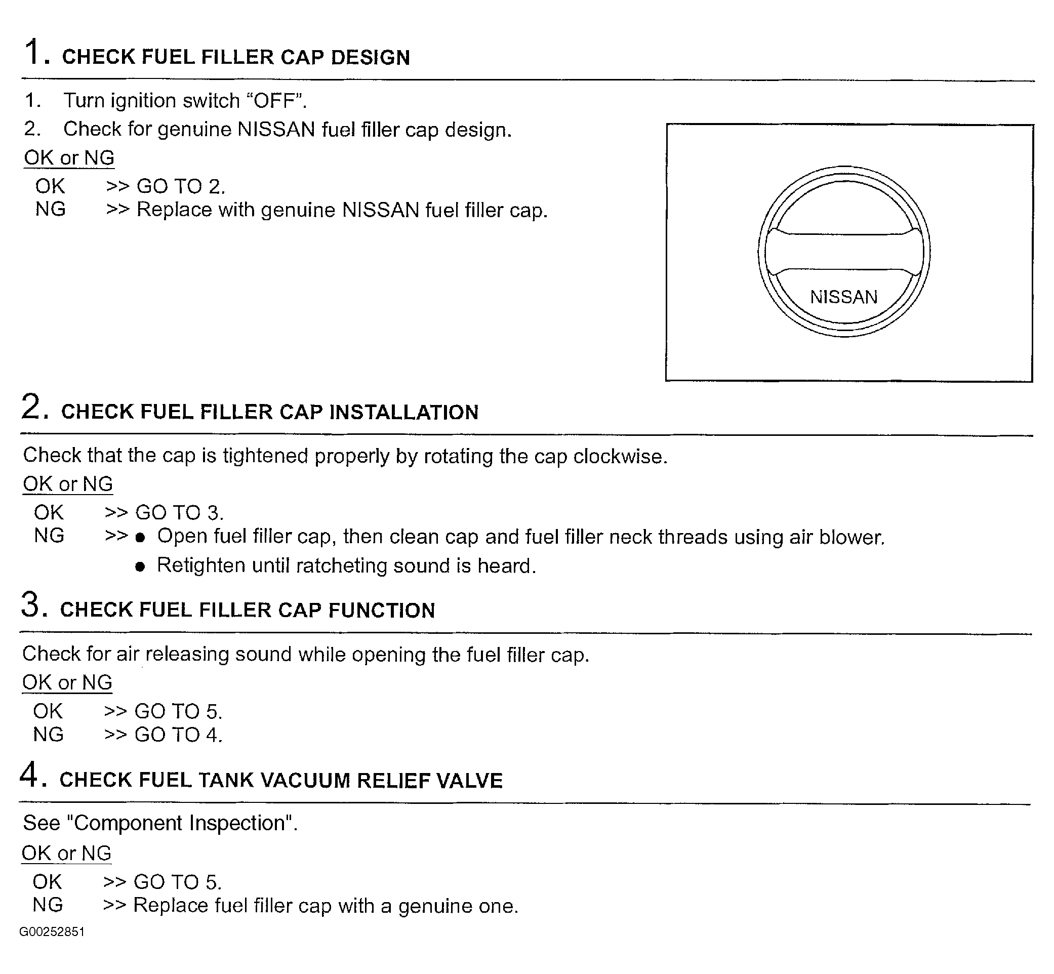 For component inspection, see COMPONENT INSPECTION , EVAP canister vent control valve DTC confirmation procedure, see DTC CONFIRMATION PROCEDURE under DTC P1446: EVAP CANISTER VENT CONTROL VALVE, for EVAP canister purge volume control solenoid valve component inspection, see COMPONENT INSPECTION under DTC P0444 OR DTC P0445: EVAP CANISTER PURGE VOLUME CONTROL SOLENOID VALVE, for absolute pressure sensor component inspection, see DTC CONFIRMATION PROCEDURE under DTC P0102 OR DTC P0103: MASS AIRFLOW SENSOR, for fuel tank temperature sensor component inspection, see COMPONENT INSPECTION under DTC P0181: FUEL TANK TEMPERATURE SENSOR, for EVAP control system pressure sensor component inspection, see COMPONENT INSPECTION or COMPONENT INSPECTION (3.5L) under DTC P0452: EVAP CONTROL SYSTEM PRESSURE SENSOR, for fuel level sensor check, see FUEL LEVEL SENSOR UNIT CHECK under COMPONENT TESTS in INSTRUMENT PANELS - ALTIMA article and for intermittents, see INTERMITTENTS in TROUBLE SHOOTING - NO CODES