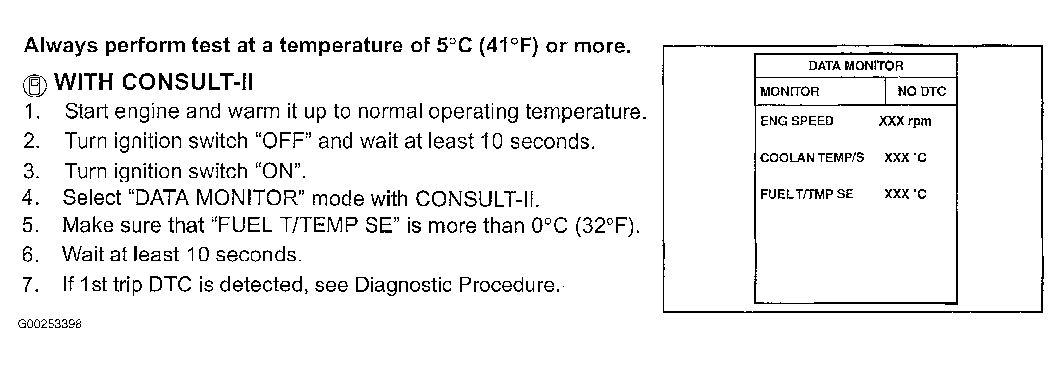 If DTC confirmation procedure has been previously conducted, always turn ignition switch OFF and wait at least 10 seconds before conducting the next test.