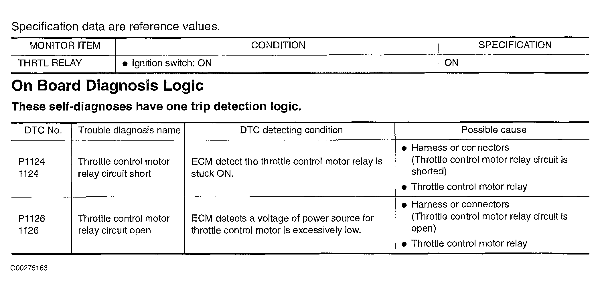 Fig 1: CONSULT-II Reference Value In Data Monitor Mode For DTC P1124 Or DTC P1126: Throttle Control Motor Relay
