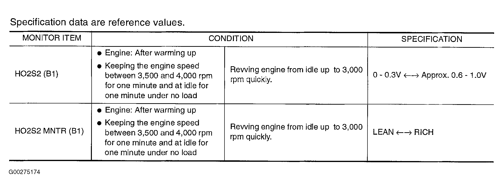 Home >> Mitsubishi >> 2003 >> Lancer Evolution >> Repair and Diagnosis >> External Pages >> Different car >> Section 82 (Engine Controls - Self-Diagnostics) >> Diagnostic Tests >> DTC P1146: Ho2S2 (2.5L) >> CONSULT-II Reference Value In Data Monitor Mode