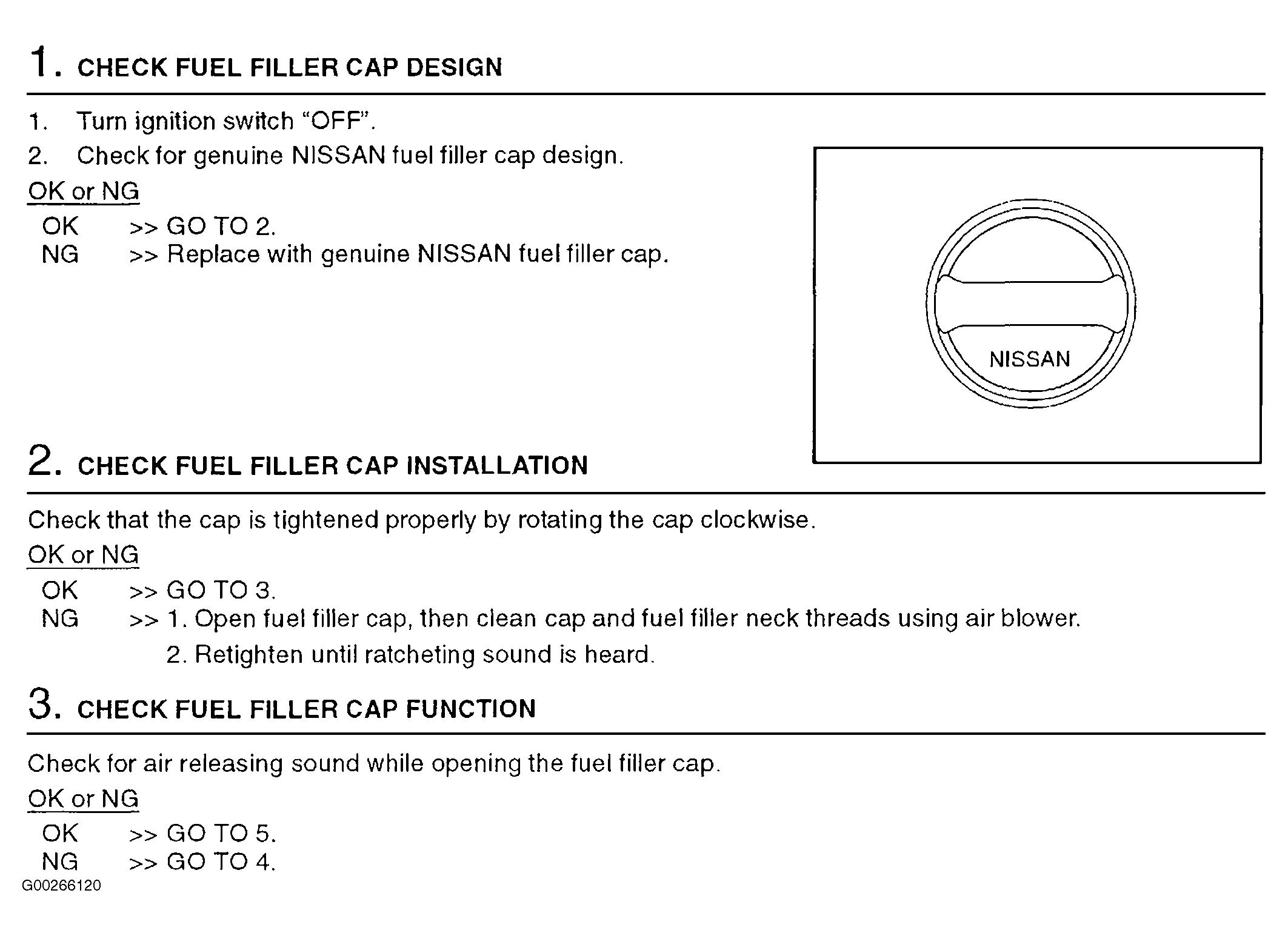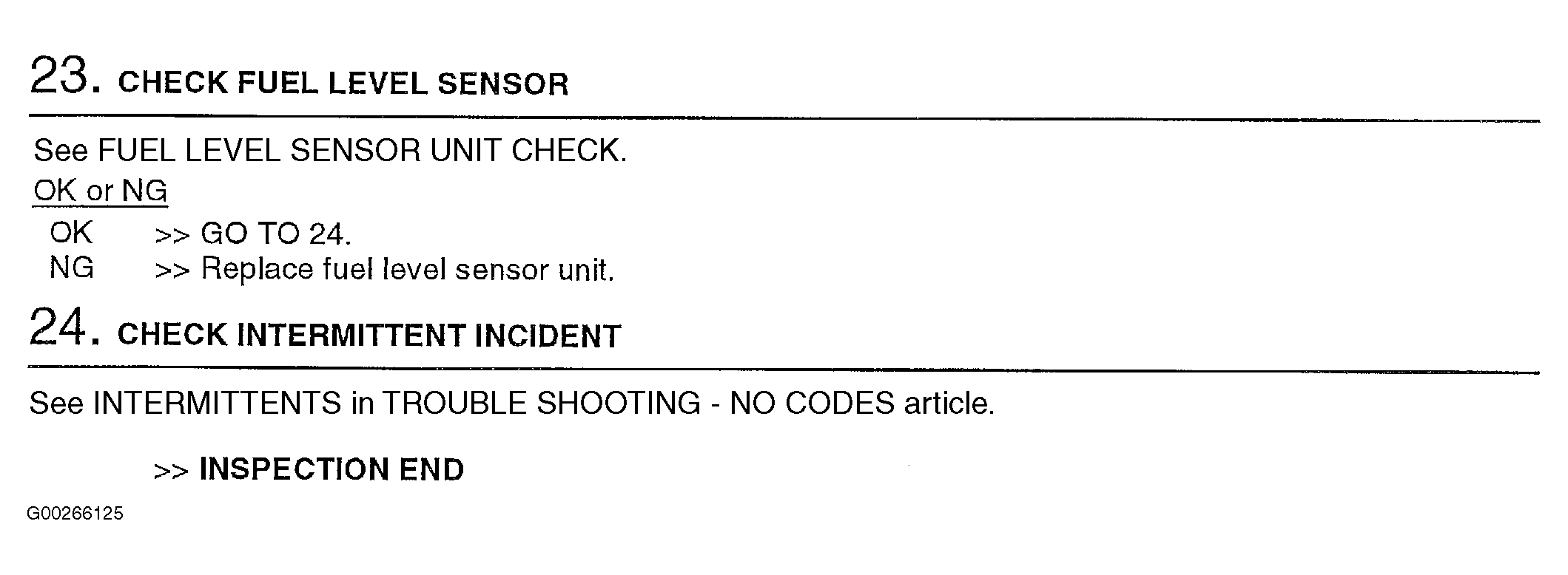 under DTC P0452: EVAP CONTROL SYSTEM PRESSURE SENSOR, for refueling control valve component inspection, see REFUELING CONTROL VALVE under ON BOARD REFUELING VAPOR RECOVERY SYSTEM in SYSTEM & COMPONENT TESTING article, for fuel level sensor check, see FUEL LEVEL SENSOR UNIT CHECK under COMPONENT TESTS in INSTRUMENT PANELS - ALTIMA article and for intermittents, see INTERMITTENTS in TROUBLE SHOOTING - NO CODES