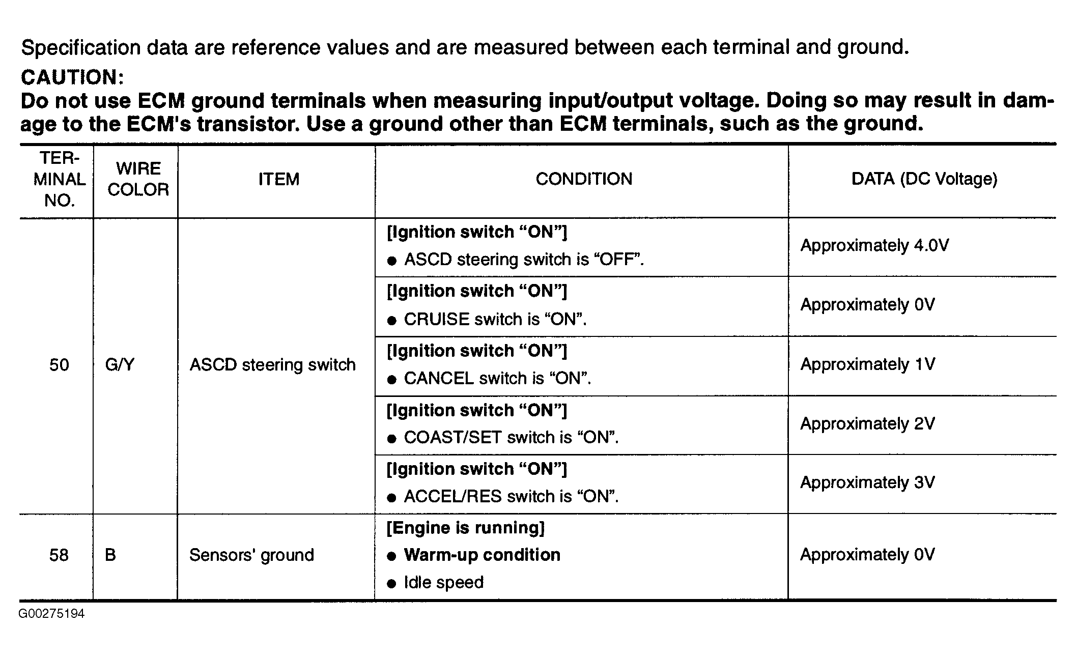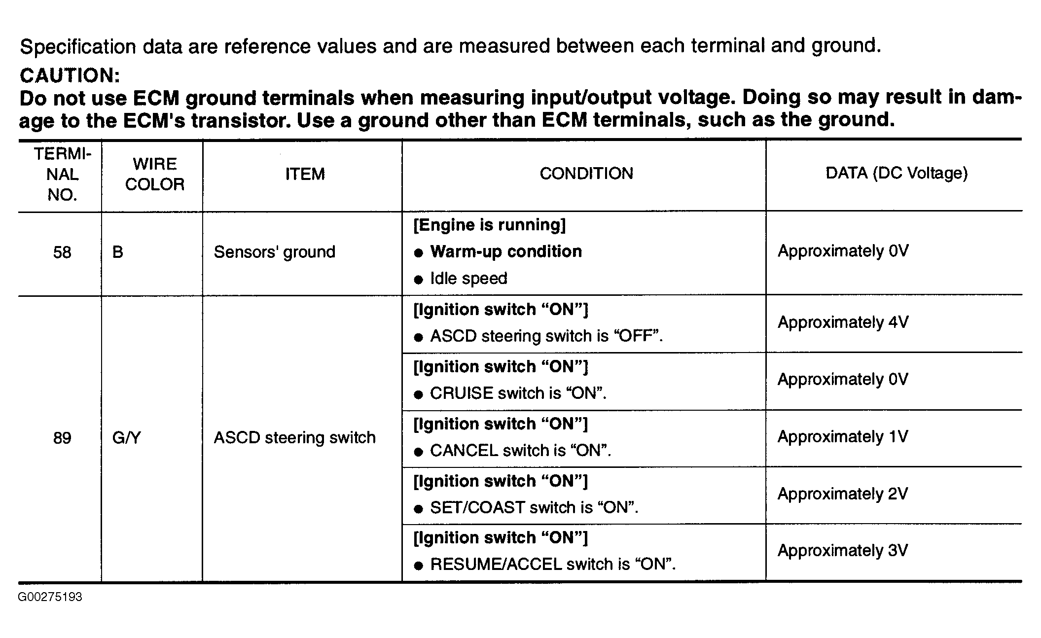 Fig 1: Circuit Testing Value Chart For DTC P1564: ASCD Steering Switch (2.5L)